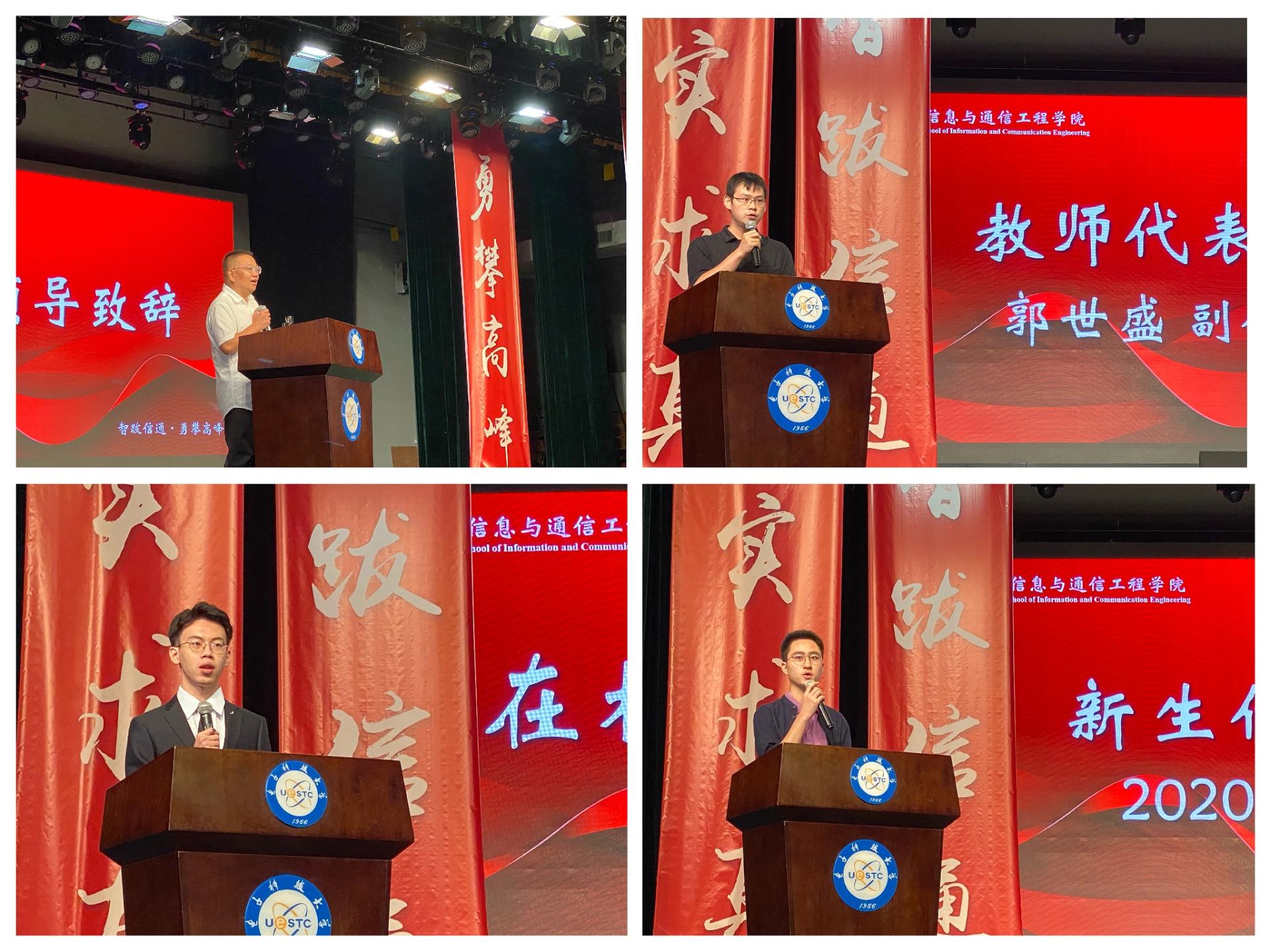 在校生代表2017级田凯元和新生代表张皓翔分别上台发言。田凯元结合三年大学生活,将亲身经历与导师的建议凝练成六字箴言:率性、顺势、奋进,与同学们展开分享。张皓翔期待与大家一起铭记初心,把握当下,在成电求实求真,大气大为,将小我,与国家发展、民族复兴的大我相结合,去为中国梦、强国梦的实现添砖加瓦。