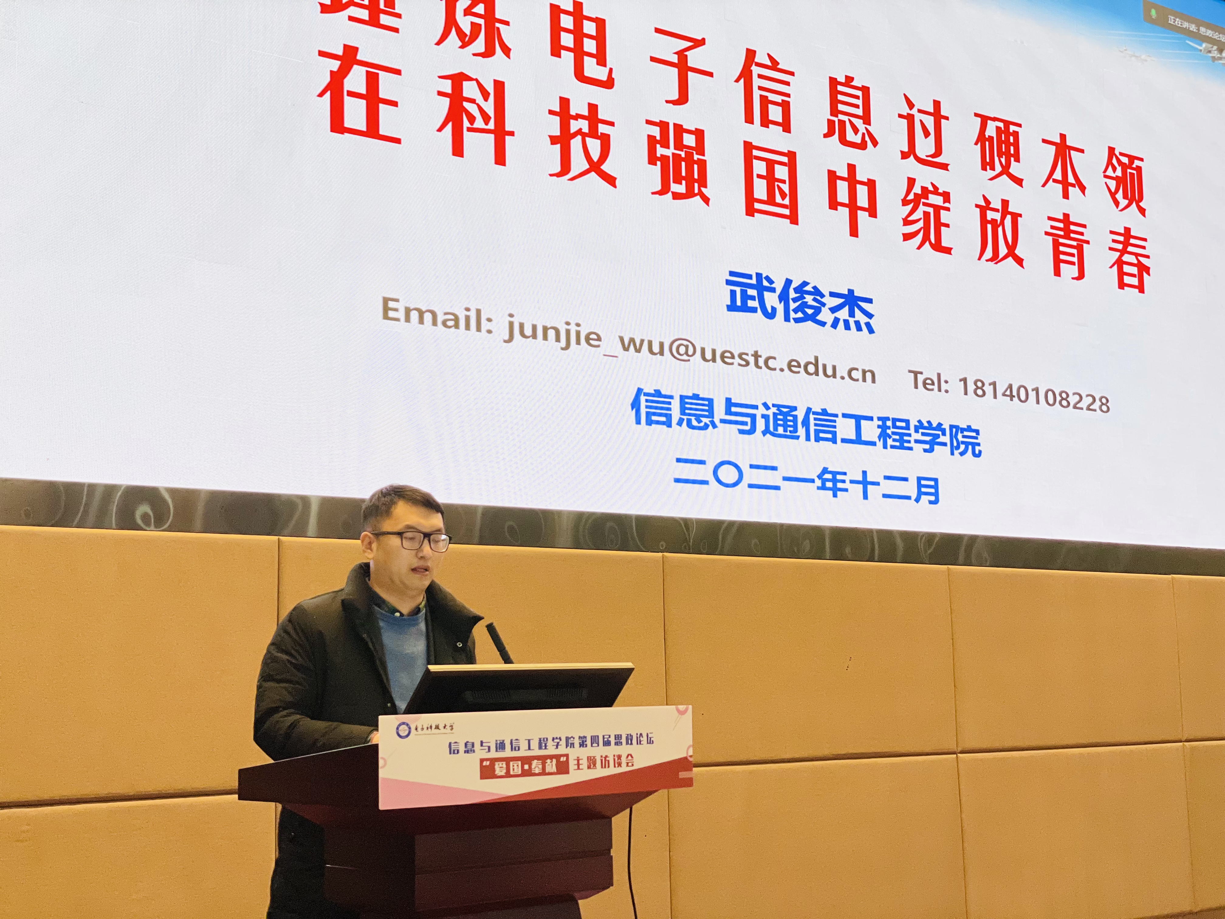 武俊杰带来“锤炼电子信息过硬本领 在科技强国中绽放青春”主题分享,从科研的角度详细介绍雷达的发展历程、基本任务、重要作用,以及不同平台的雷达和各领域雷达的具体应用。他说,新一代大学生要以“舍我其谁”的青年品格,锤炼真才实干;以“国之大者”的使命担当,服务科技强国。