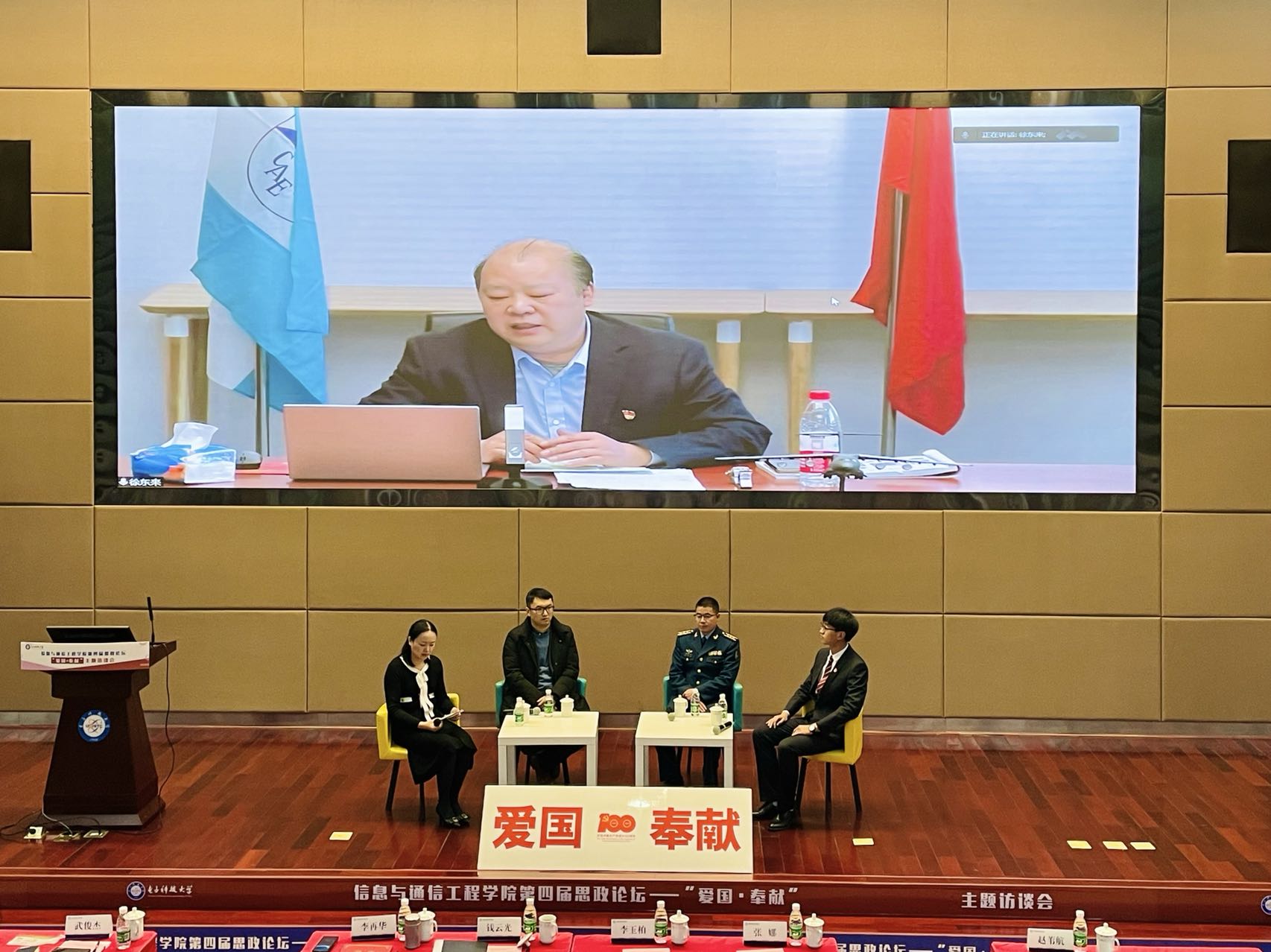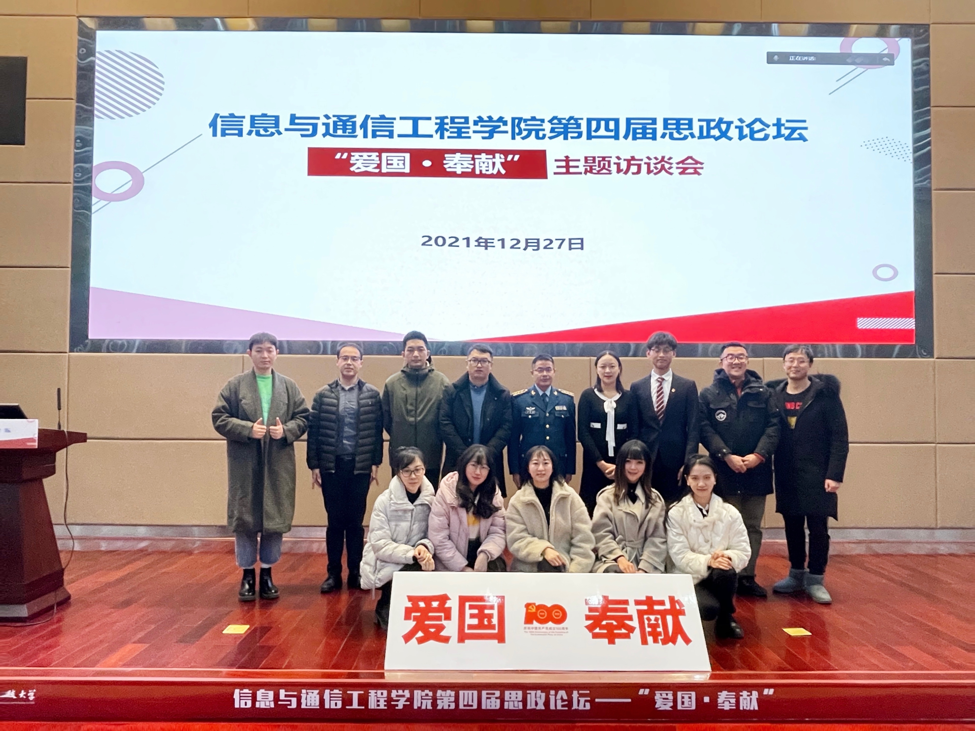 为深入学习贯彻习近平总书记在庆祝中国共产党成立100周年大会上的重要讲话和党的十九届六中全会精神及《决议》,让广大师生深入了解党和国家的发展历程、宝贵经验和伟大成就,12月27日,william英国中文在清水河校区图书馆求实厅举办第四届思政论坛“爱国·奉献”主题访谈会,此次活动通过线上下结合的方式进行。中国航空研究院党委书记徐东来、空军雷达兵某旅政治工作部主任李再华、信通学院电子工程系主任武俊杰、校青协主席赵苇航等四位嘉宾围绕“爱国 奉献”作主题分享和访谈交流。校党委学生工作部部长钱云光、党委宣传部副部长张娜、学院党委书记李玉柏等嘉宾出席活动,本次访谈会由学院党委副书记杨晓玲主持。