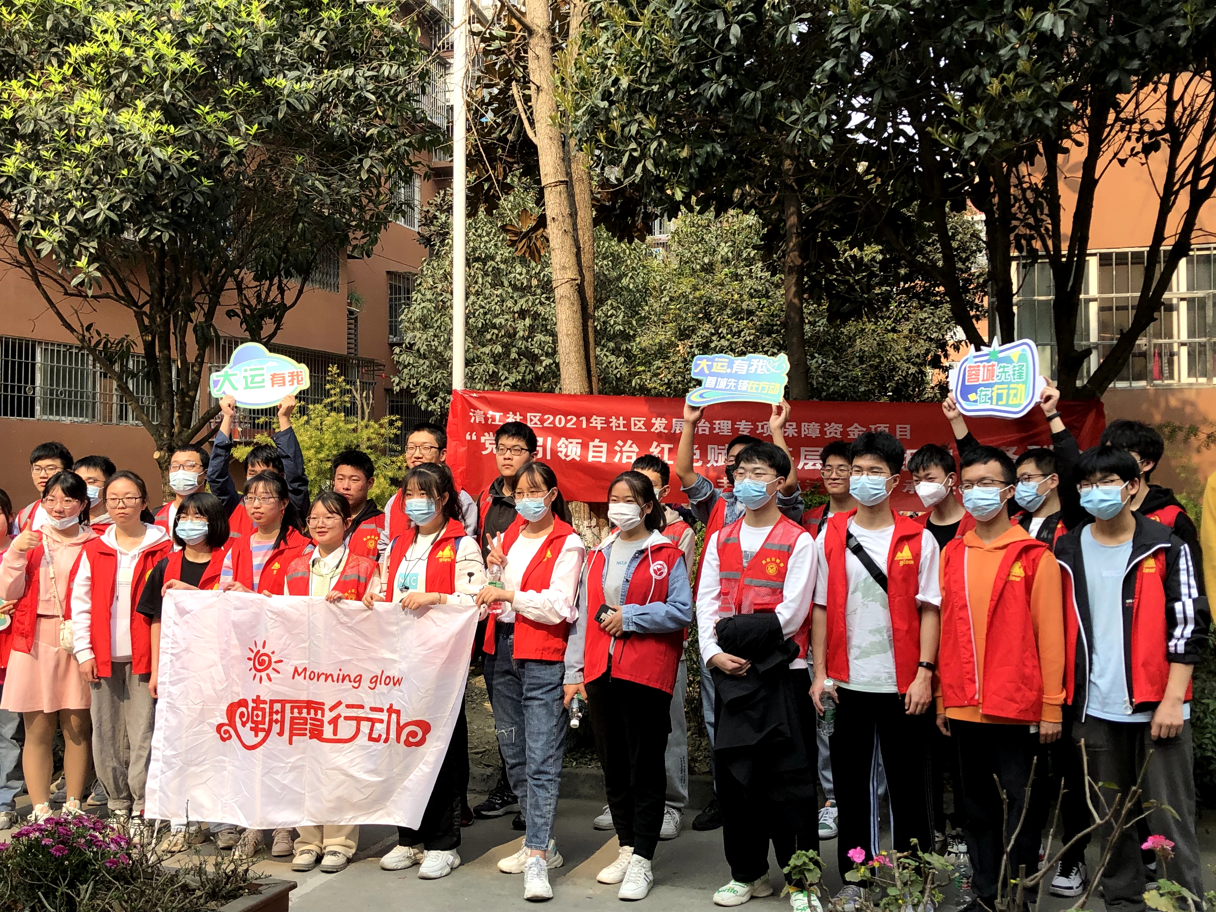 更有意义,朝霞公益实践队携手清江社区在3月12号上午9点到12点举行植树节活动。上午8:45,活动如期举行。全体人员在南门集合,由负责人员带领参与报名者前往植树场地——清江社区。本次活动由魏梓萱、许锐等同学负责,报名植树节活动的全体同学参与。