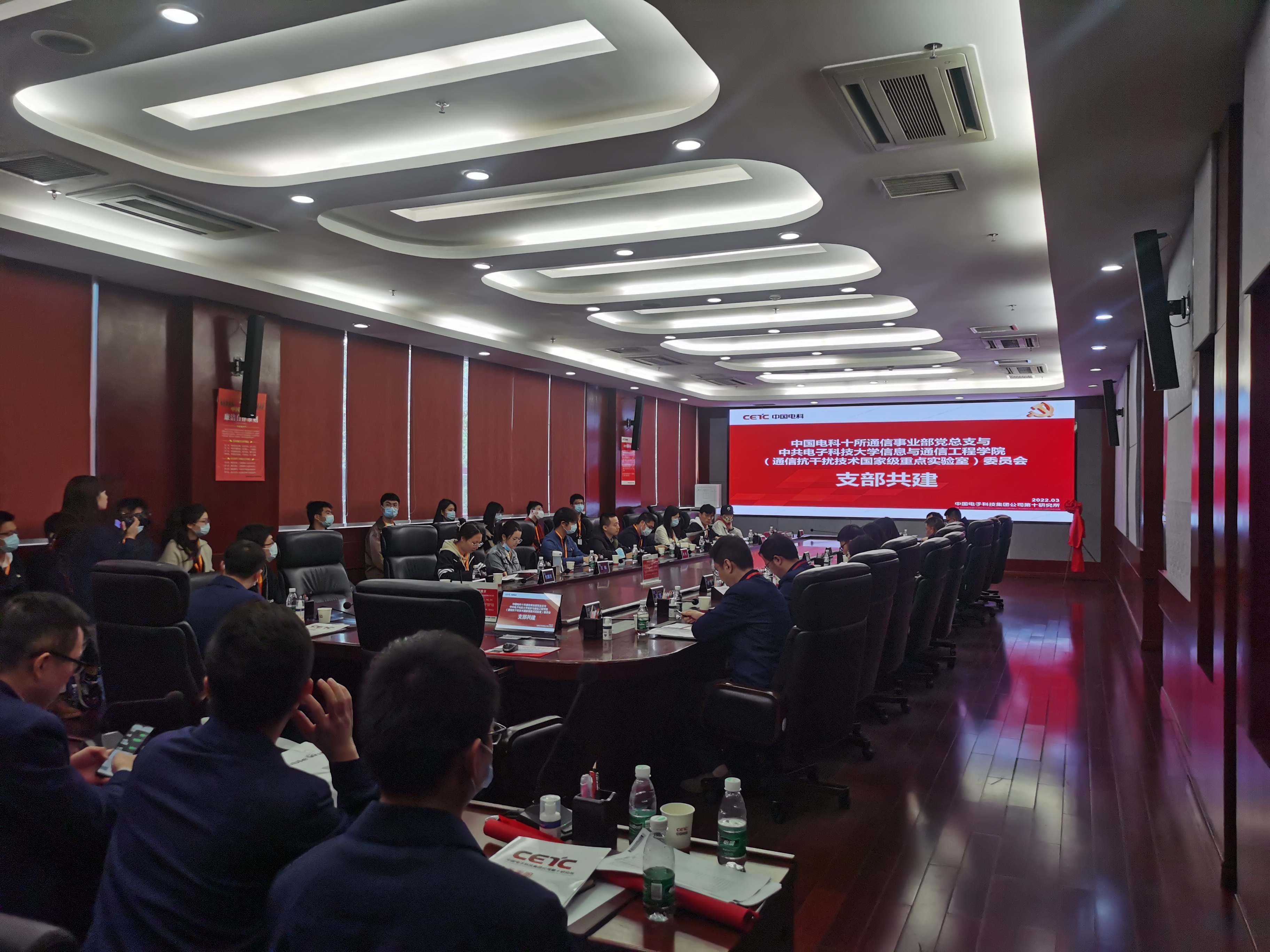 十所通信事业部党总支书记陈蓓、信息与通信党委副书记黄海、通信事业部下辖的七位党支部书记、通信抗干扰技术国家级重点实验室成先涛教授与学生党员代表共同出席了签约仪式。在仪式正式开始前,陈蓓书记带领师生参观了位于所内的展览馆,让师生对十所的发展历程、研究方向有了更全面、深刻的了解。