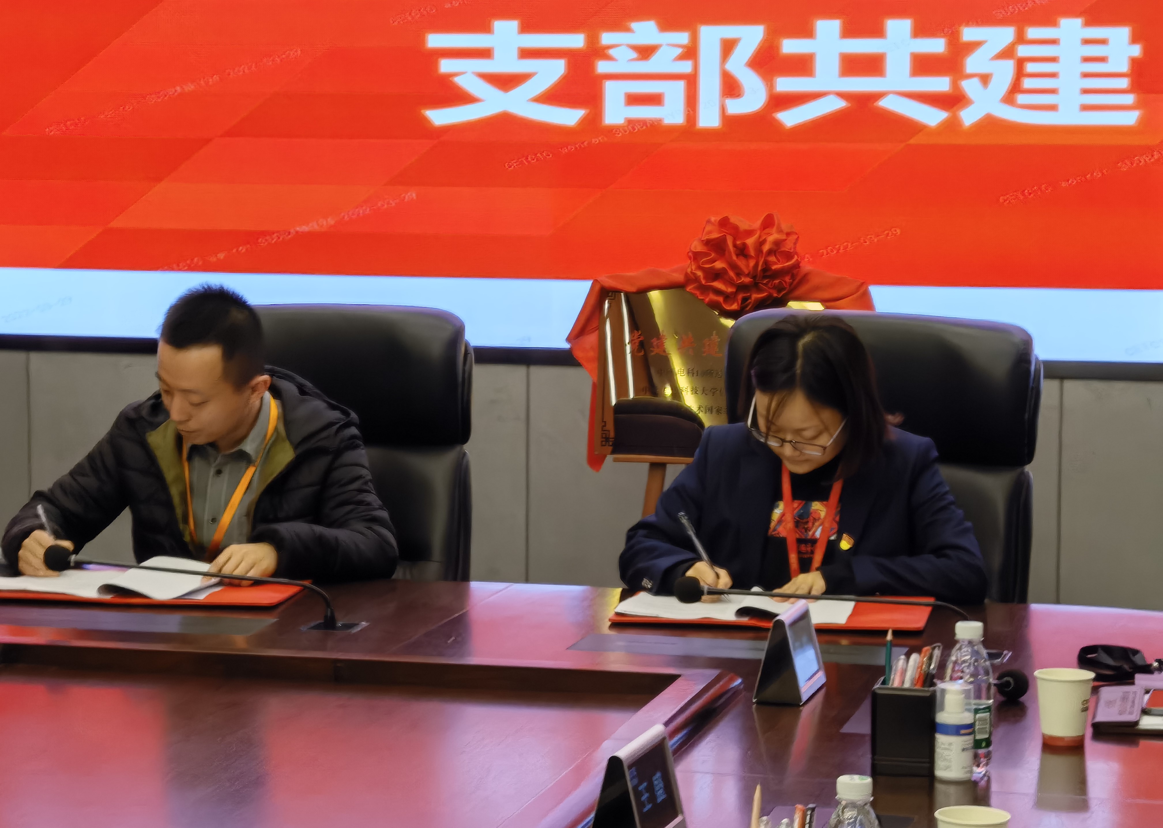 会议最后一项议程是支部共建签约仪式,由黄书记和陈书记分别代表共建双方完成共建协议书的签订。陈书记表示,希望能够以本次支部共建活动为开端,后续开展更多丰富的活动,尤其是针对科技创新的活动。期待后续双方能够共享资源、共促发展,开展更多更有意义的活动,以党建带领各项事业发展,在人才培养的征程上携手并进,共同提高人才培养质量。