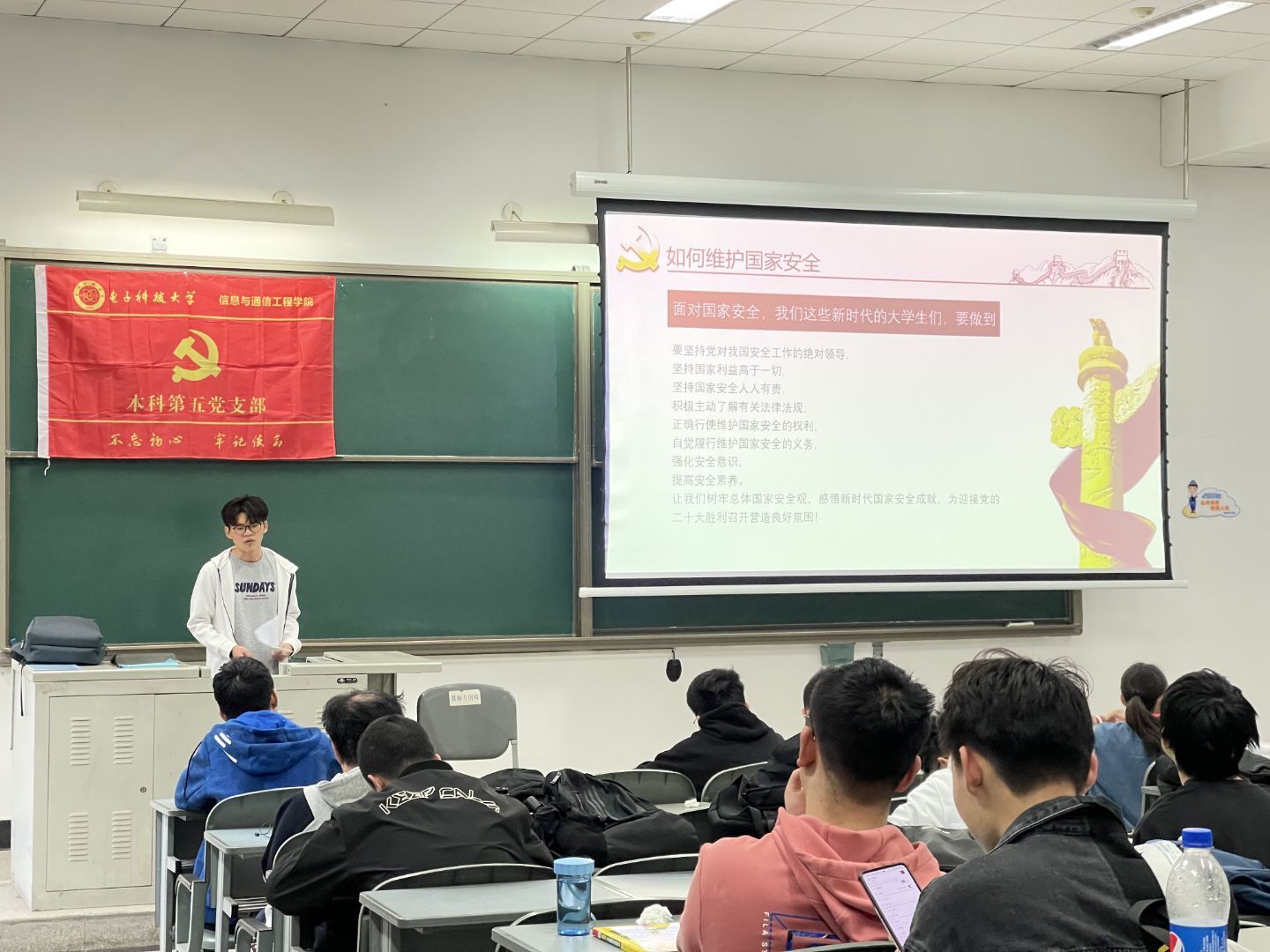 15日上午,学院“5月的向日葵”辅导员工作室下属“信仰之光”新思想宣讲团多名本科生党员走进早自习教室开展安全教育宣讲,向大家介绍国家安全的基本知识,通过讲述真实案例强调维护国家安全的重要性,呼吁全体同学树牢总体国家安全观,一起做国家安全的守护者。