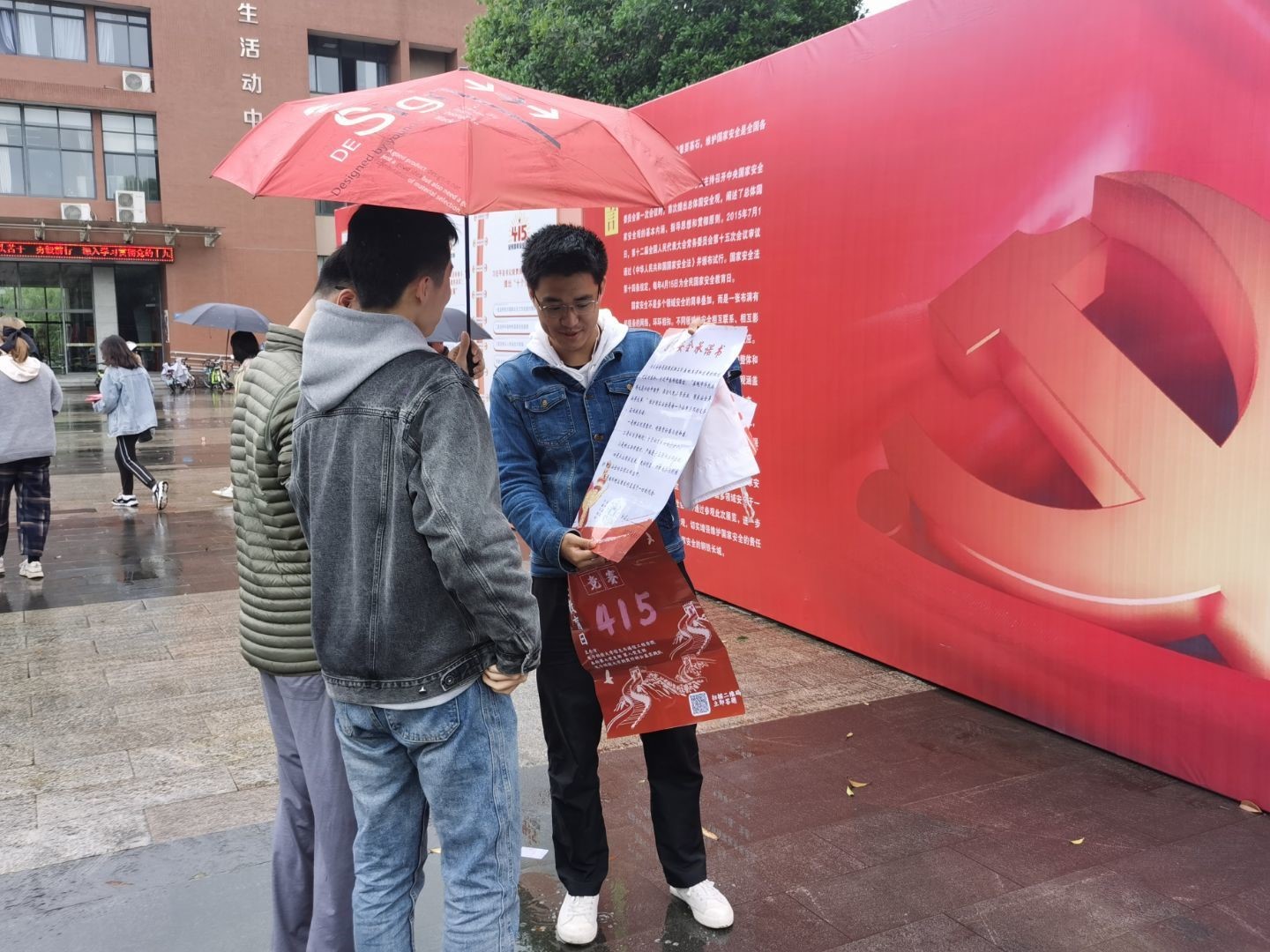 中午,各党支部和朝霞行动公益实践队的同学们在校园内进行安全宣传活动,同时在线上举办在线签名承诺书、有奖知识竞赛,传播安全知识的同时引导同学们增强维护国家安全的意识。