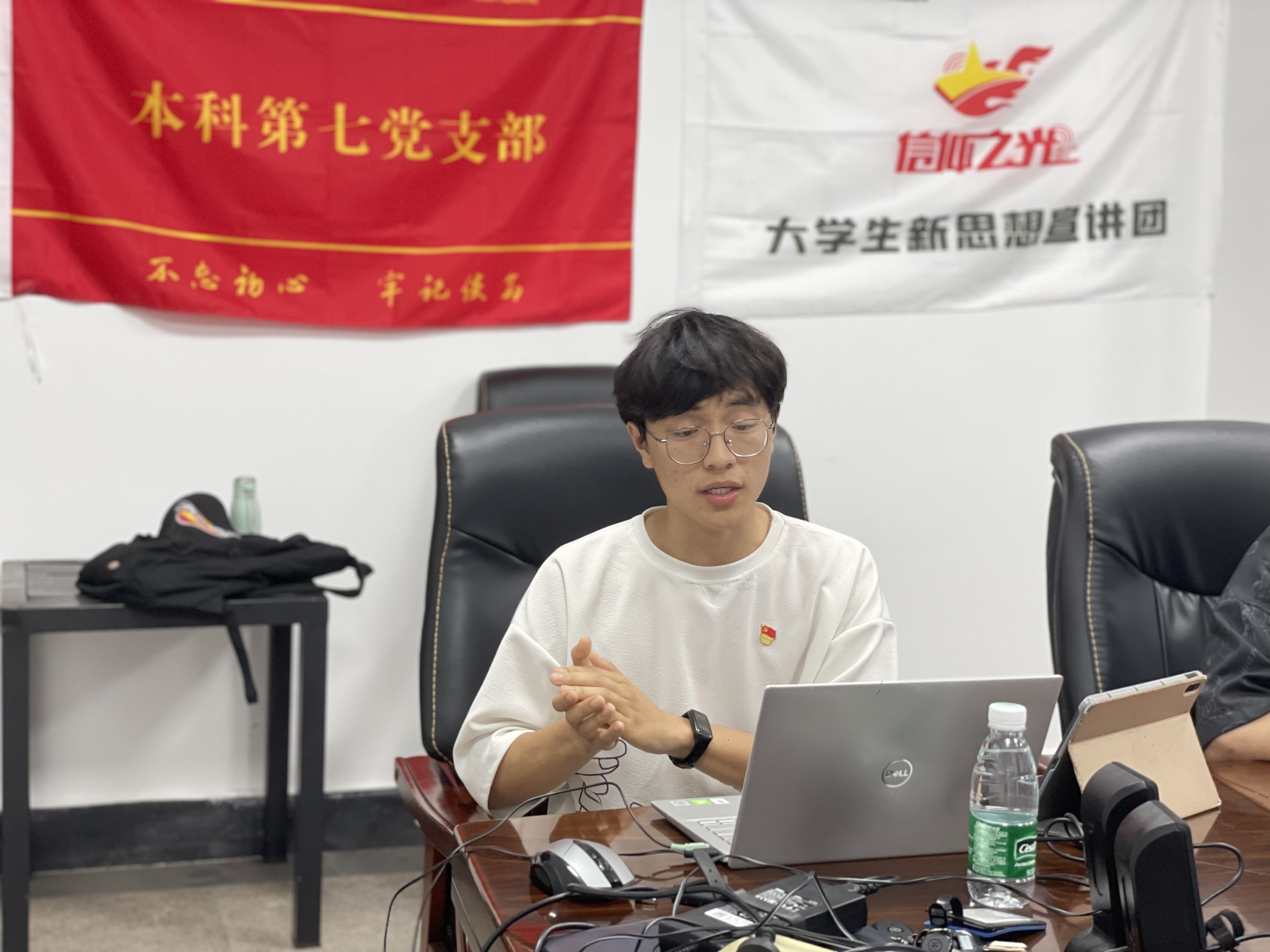 首先由双方支部学生代表进行领学宣讲。北理工孙健同学带领大家共同学习习近平总书记建团百年大会的重要讲话精神,分享支部同学们在志愿活动、科研学术和创新竞赛上取得的各项成绩,鼓励青年大学生主动作为、勇挑重担,让青春在实现中华民族伟大复兴的中国梦中绽放异彩;信通学院“信仰之光”大学生新思想宣讲团秦量同学为大家讲述红军长征在雅安的拼搏奋斗,通过介绍陈云出川、翻越夹金山等历史事件的背景和意义,鼓励同学们勇担使命,走好青年一代的长征路。