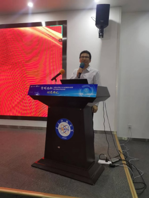 获奖学生代表孙健晖同学上台和大家分享了自己参加比赛的收获和感受。他回顾了自己参赛过程中的艰辛历程,表示自己和他的团队在比赛中学习,在比赛中进步,他也建议同学们善用英文资料,不断总结比赛经验,做好充分的准备。