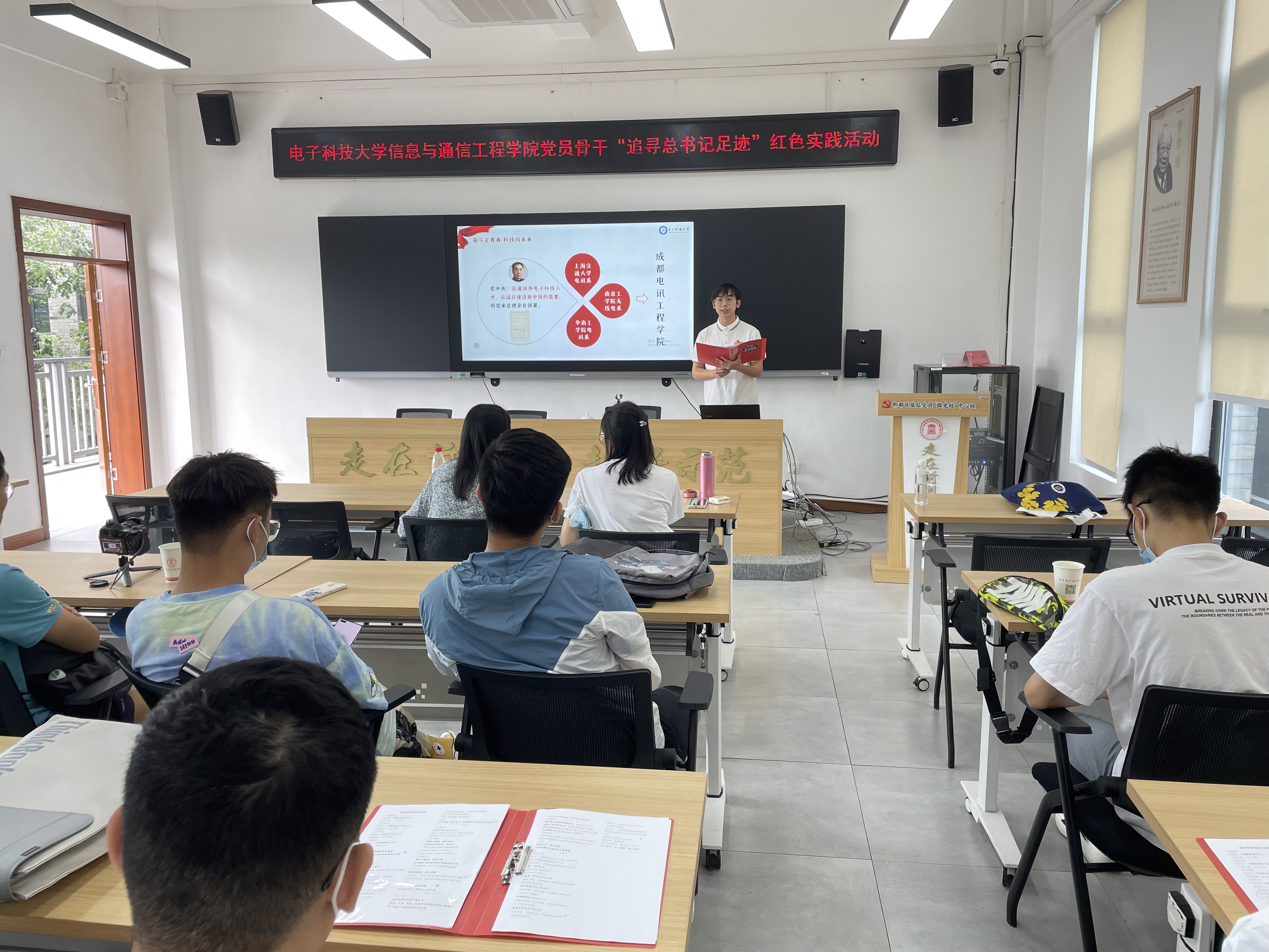 “信仰之光”大学生新思想宣讲团、2019级本科生党员林浩以“奋斗正青春,科技向未来”为题带来微党课,向大家解读了科学家精神的具体内涵,讲述了老一辈成电人潜心科研,为祖国国防事业奉献青春和热血的故事,鼓励同学们牢记科技报国使命,学好专业知识,为祖国发展贡献才智和能力。