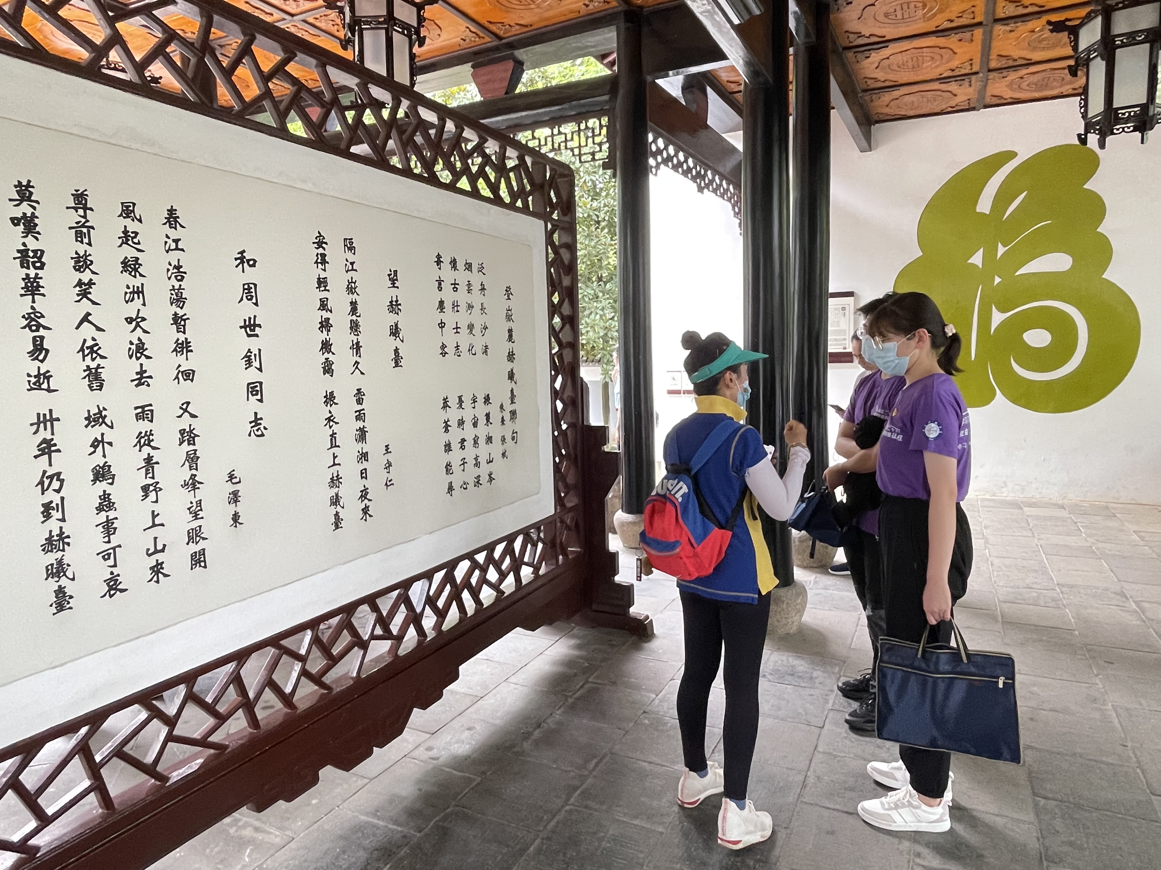 队员们还前往位于湘江之畔、岳麓山下的千年学府——湖南大学岳麓书院,作为我国现存规模最大、保存最完好的书院建筑群,这里处处闪烁着时光淬炼的人文精神。在讲解员带领下,队员们先后参观了赫曦台、“实事求是”匾额、时务学堂、爱晚亭等标志性建筑。行走在岳麓书院里的每一处,都仿佛能听到昔日朗朗的读书声,都仿佛在与先贤对话,让每一个人都深刻地感受到了古代思想闪耀的光芒。