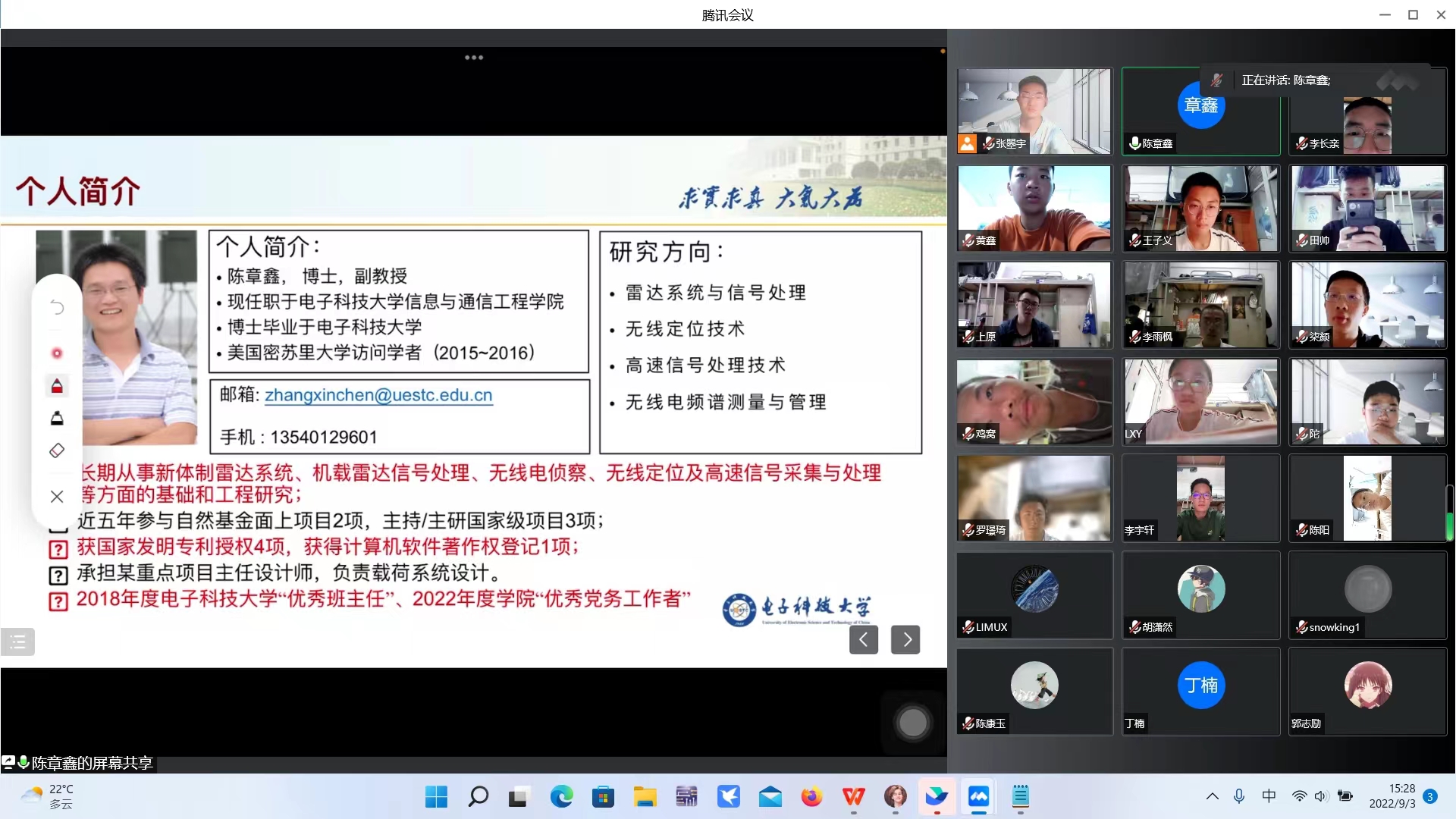 9月2日-4日,学院2022级17名班主任,面向每个新生班级开展班级线上见面会,重点就大学学习建议指导、如何开展好网课学习等进行分享交流,帮助新生更好适应大学过渡和网课学习。