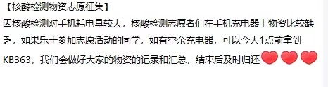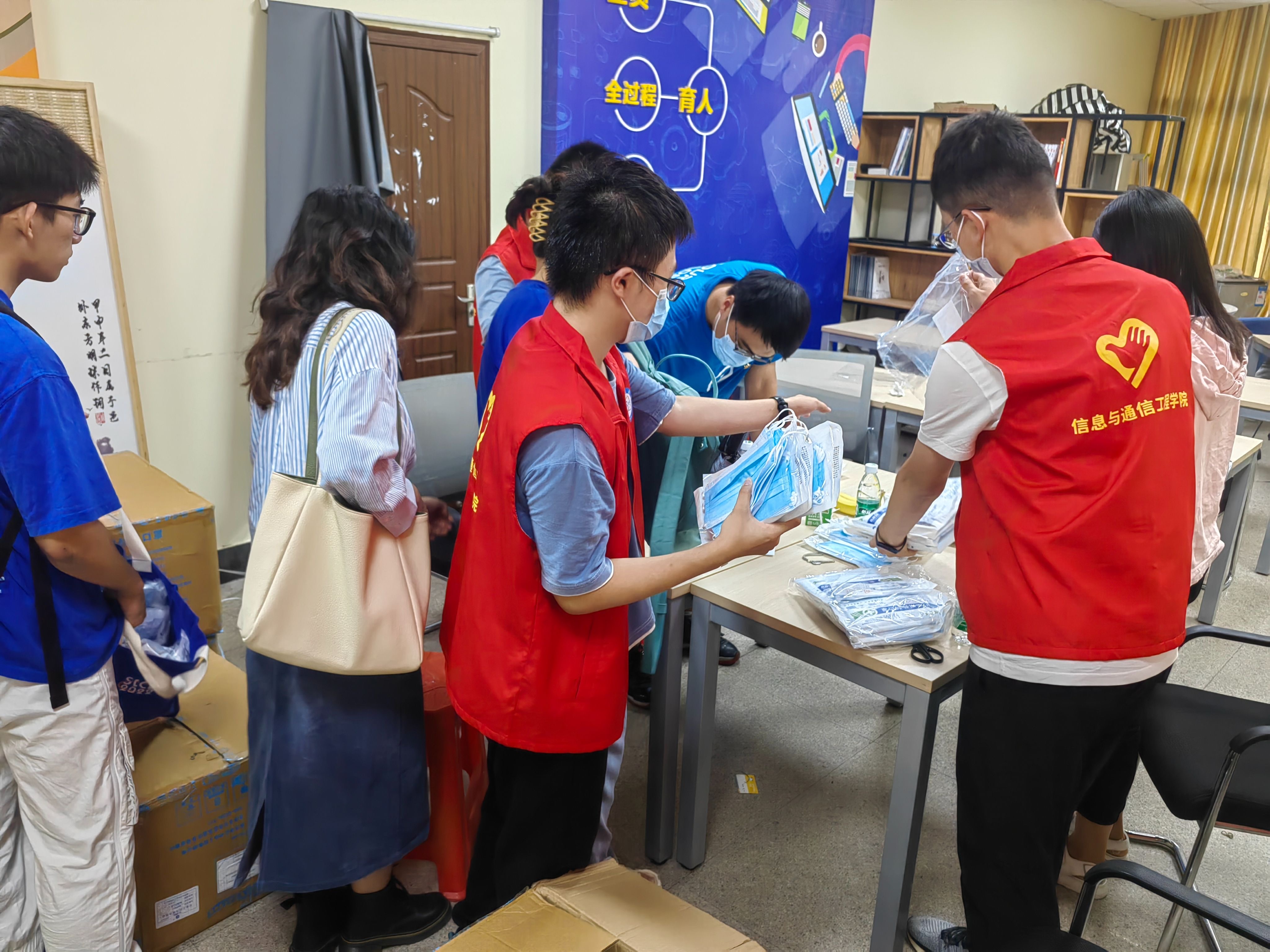 9月2日,学院学生党员第一时间响应号召投身志愿活动,为保障核酸检测正常有序进行,主动提供30个附有手写祝福的充电设备至核酸检测点,并参与防疫物资分发,将13000余个口罩有序发放至学院在校生手中。