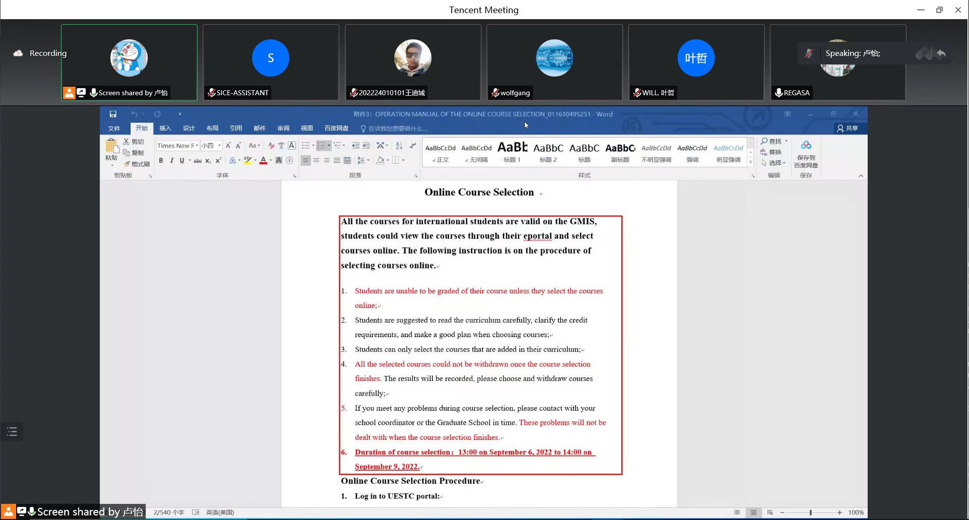 9月5日,学院开展留学生选课线上培训并进行一对一答疑,保障所有2022级留学生新生顺利选课。