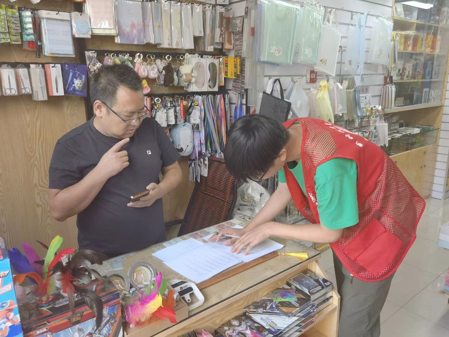 高店社区内是集商贸餐饮、科研通信、医疗卫生等为一体的黄金地段,为了将社区资源充分利用起来,形成社区发展动力,实现高店社区儿童友好型社区的建设目标,朝霞行动公益实践队队员走进高店社区,走访街边店铺,以填写意见征集问卷的形式收集商户看法及意见。同时,队员们向商户讲述社区“儿童友好”理念,引导商户参与到社区治理中来,实现儿童友好型社区建设。