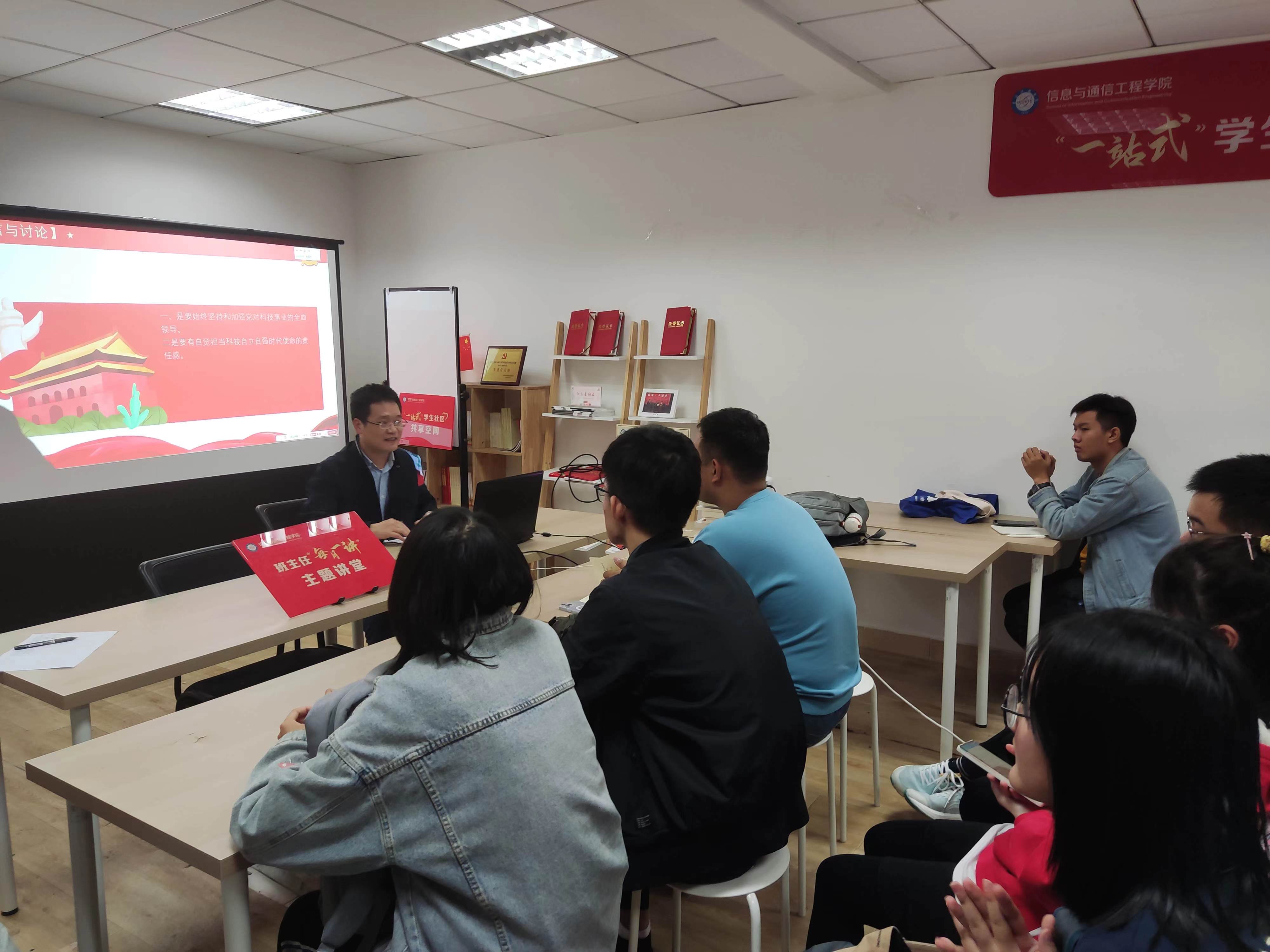 10月13日下午,信通学院举行班主任“每月一讲”主题讲堂第六期活动,活动在学院“一站式”学生社区开展。本次活动邀请了学院2022级班主任陈章鑫老师以“入党启蒙教育”为主题,与同学们开展交流分享。本次讲座由信通学院学生发展指导中心主办。