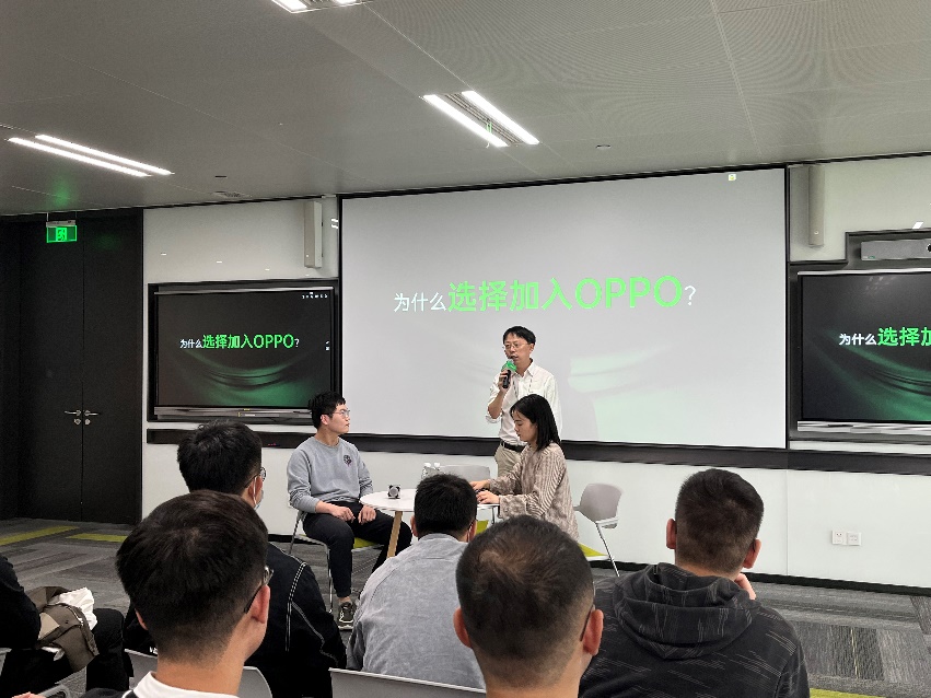 随后HR老师从介绍OPPO公司的业务入手,从OPPO的市场规模讲到OPPO的发展历史再讲到OPPO未来的布局规划,强调OPPO公司重视科技创新的同时,也注重员工的成长与发展,给同学们展现了OPPO作为前排科技企业稳扎稳打,奋发向上的形象,进一步说明了OPPO“坚守初心,本分勤恳”的企业价值导向。