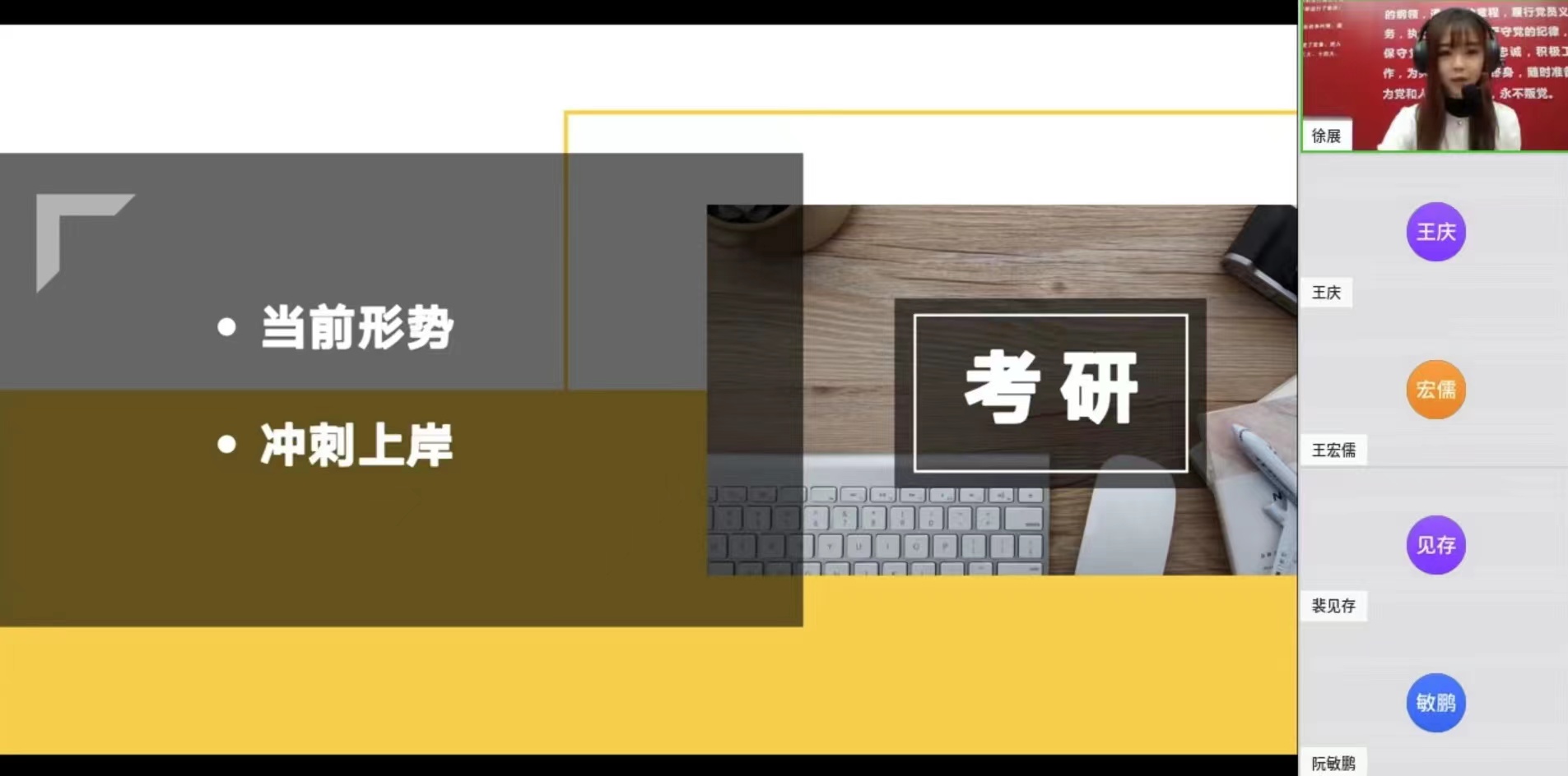 随后,年级辅导员徐展为家长们介绍了现阶段考研的基本情况,从全国考研整体趋势到本学院近年应届生考研情况和今年面临的几大变化进行分析,建议家长在学生备战考研的冲刺阶段给予鼓励和包容,同时结合孩子自身和家庭实际,理性决定毕业去向。