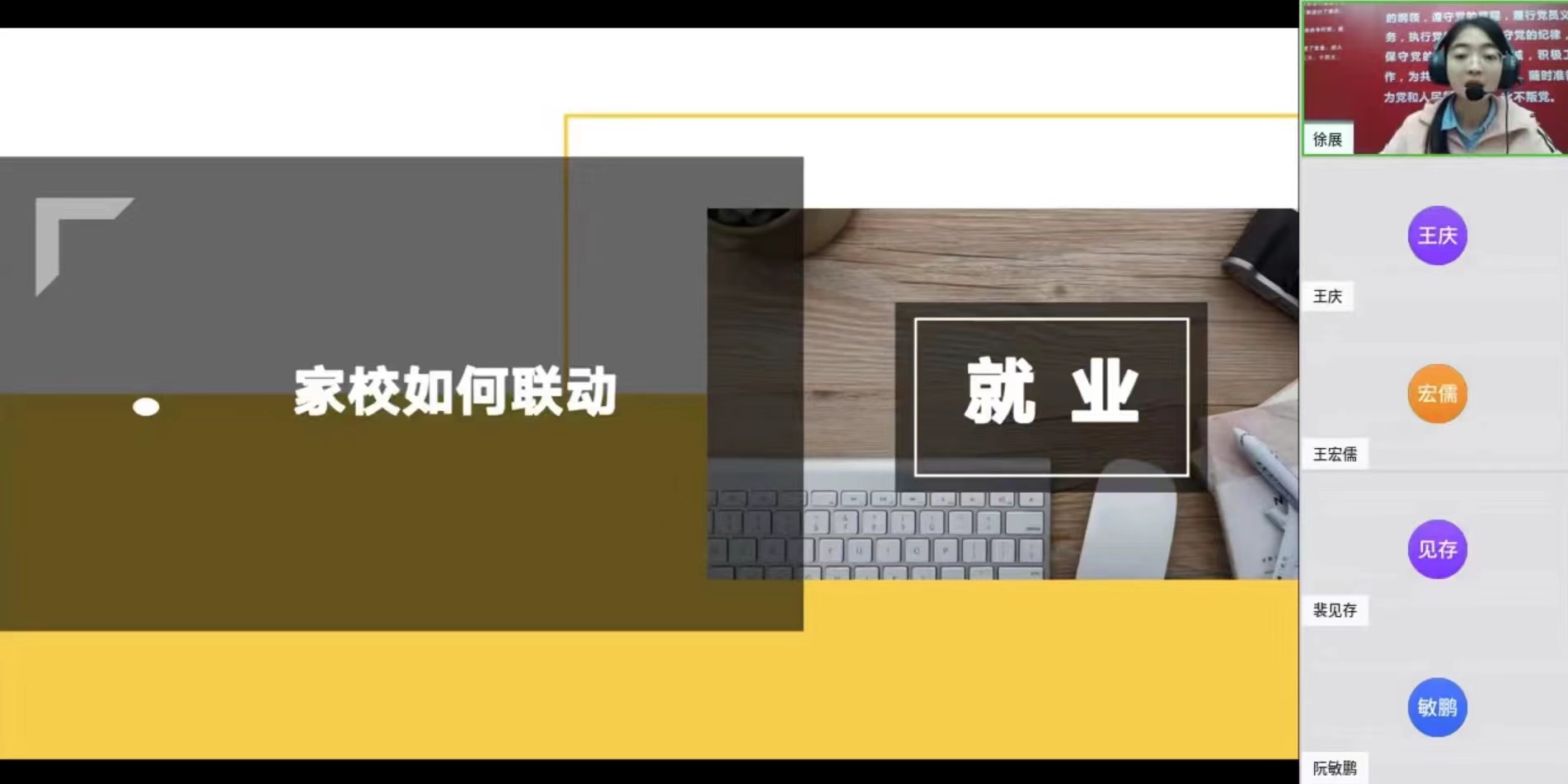 11月23日晚,为更好促进家校协同助力毕业生成长,william英国中文召开本科毕业班线上家长会,学院党委副书记杨晓玲、年级辅导员和大四年级学生家长参加会议。