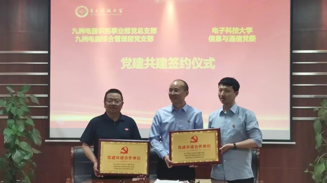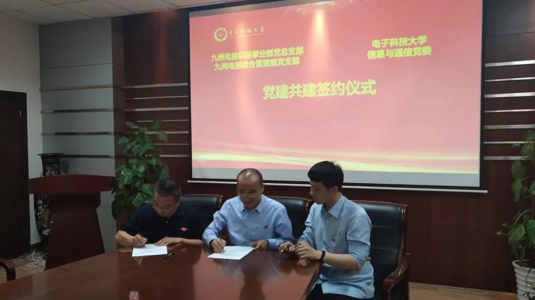 最后,在与会同志的共同见证下,九洲电器识别事业部党支部书记汪小林同志、综合管理部党支部副书记李巍同志与信息与通信党委书记李玉柏同志签署了党建共建合作协议书并互赠“党建共建合作单位”牌匾,正式开启双方党建共建合作的新篇章。此次活动以结对共建为载体,探索高校党支部与企业党支部之间优势互补、共同发展的党建工作新途径,对双方开展党建工作具有重要意义。