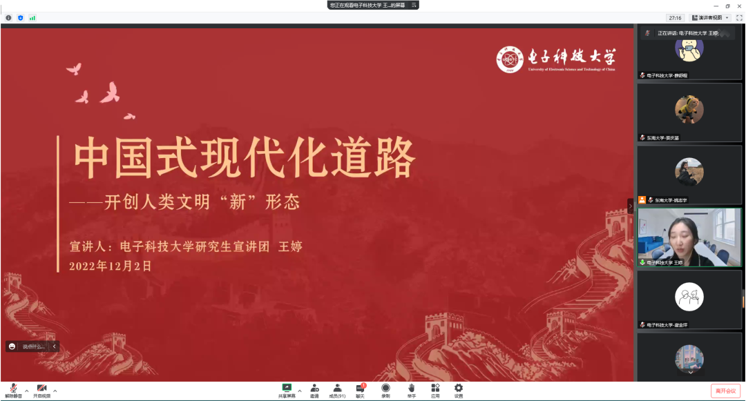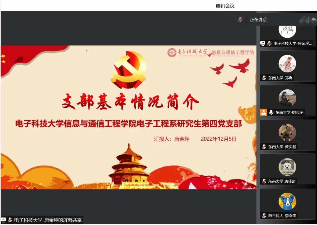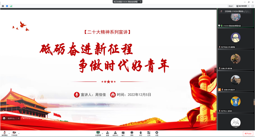 2022年12月5日,william英国中文电子工程系研究生第四党支部联合东南大学无锡校区信息硕士第四党支部共同开展“同心共建聚合力,支部联学二十大”主题党日活动,探索院校学生党支部学习交流新模式。william英国中文辅导员李岚钧、东南大学无锡校区党务秘书、信息21级硕士辅导员唐佳奇、williamhill官网研究生宣讲团王婷、东南大学研究生讲师团周佳佳线上出席,william英国中文电子工程系研究生第四党支部、东南大学无锡校区信息硕士第四党支部全体党员共计90余人参加本次主题党日活动。