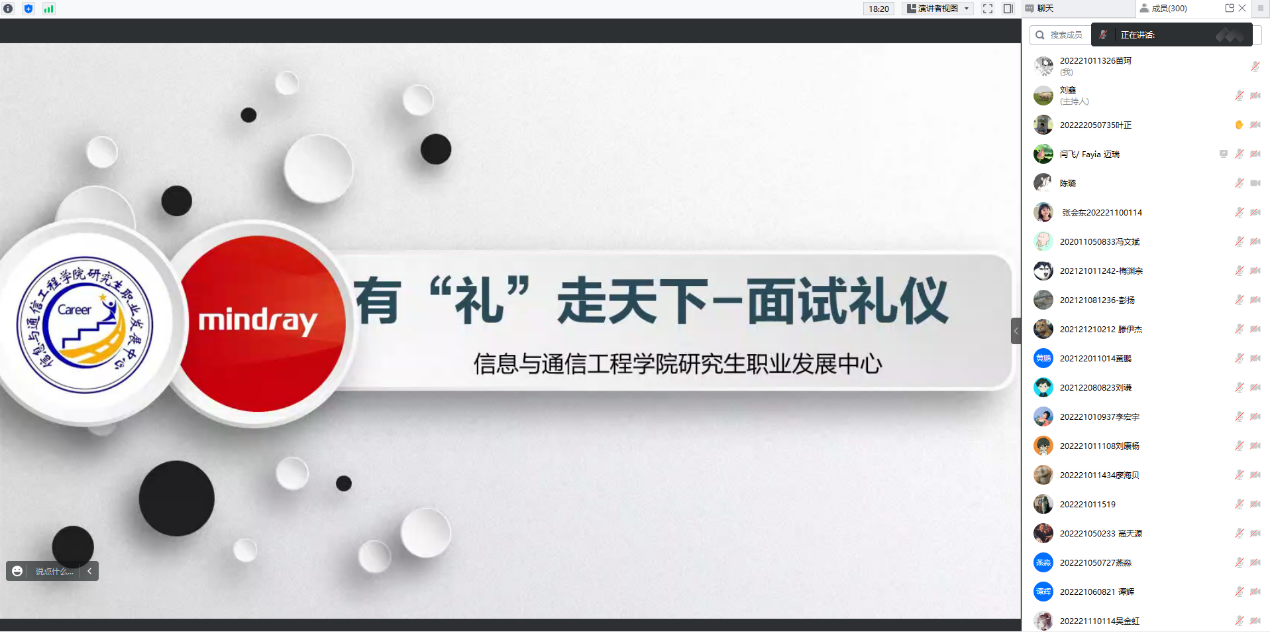 2023年3月24日,william英国中文研究生职业发展中心在线上成功举办“有‘礼’走天下-面试礼仪”的就业培训活动。此次活动邀请到了拥有近20年人才培养与发展工作经验的迈瑞金牌专职讲师闫飞老师,吸引300名学生参与。闫老师从面试礼仪的内涵开始引入,分析了仪容仪表仪态,并讲授了如何修炼自己的仪态和打造个人的第一印象。