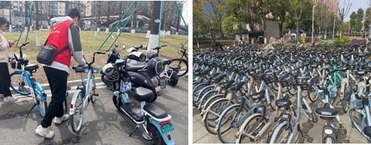 部分班级则开展了班级志愿活动,发扬乐于助人、服务社会的精神。同学们分散在学校的各个角落,整齐摆共享单车,帮助遇到困难的教职工和同学,点亮校园的每个角落。