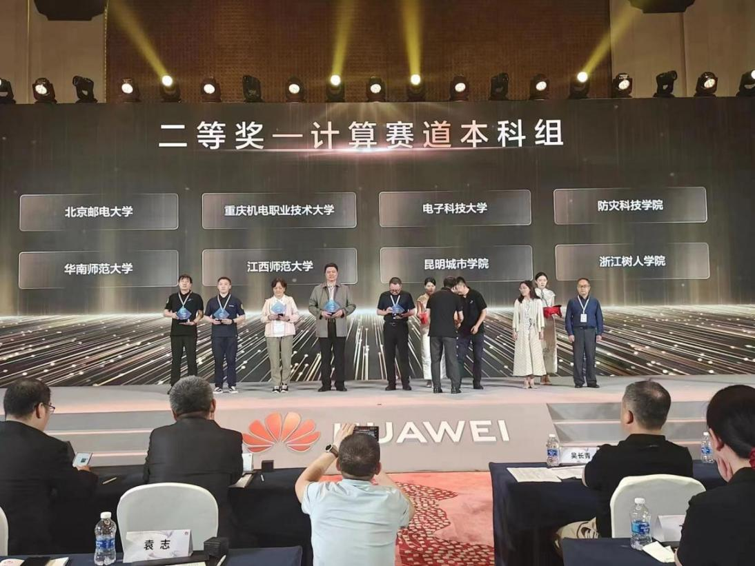 4月13日,第七届华为ICT大赛2022-2023年全国总决赛颁奖典礼在海南举行。本届竞赛分为创新赛和实践赛两个赛道,创新赛道中,我校获得全国一等奖1项,全国二等奖1项和全国三等奖2项,获奖队伍数量居全国高校之首。实践赛道中,我校2支代表队以四川省本科组特等奖进入全国总决赛,最终分别获得计算赛道本科组全国二等奖和云赛道本科组三等奖。
