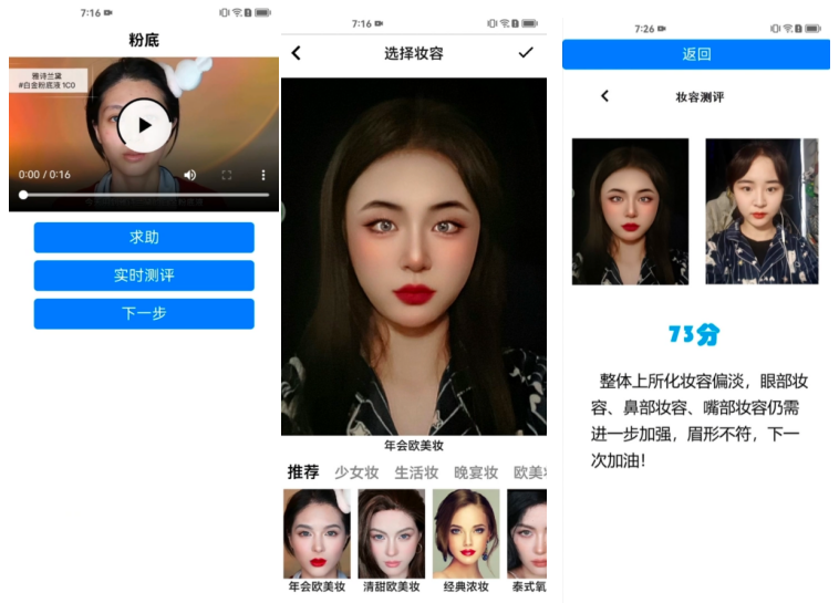 创新赛一等奖作品“华妆”,基于Harmony OS开发的原生App,集成华为云服务器进行模型预测与openGauss数据库进行用户账户、妆容库以及教学视频管理,使用xml创建布局,使用Harmony OS 3.0 API,基于java开发前端界面,通过调用华为设备的摄像头,对用户脸部进行拍摄,使用hppt协议将客户端和服务器进行连接,实时传输相关数据。