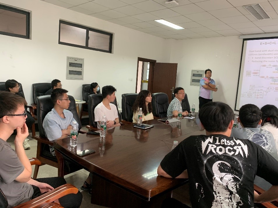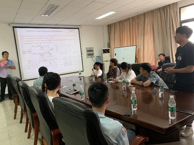 在报告的过程中,同学们对拉曼放大器都充满了极大的兴趣,纷纷与Tan Mingming老师进行互动。从系统模型建立、复杂实验测试到核心参数理解等方面逐一提出了自己的疑问,Tan Mingming老师也耐心地一一解答了同学们的问题。