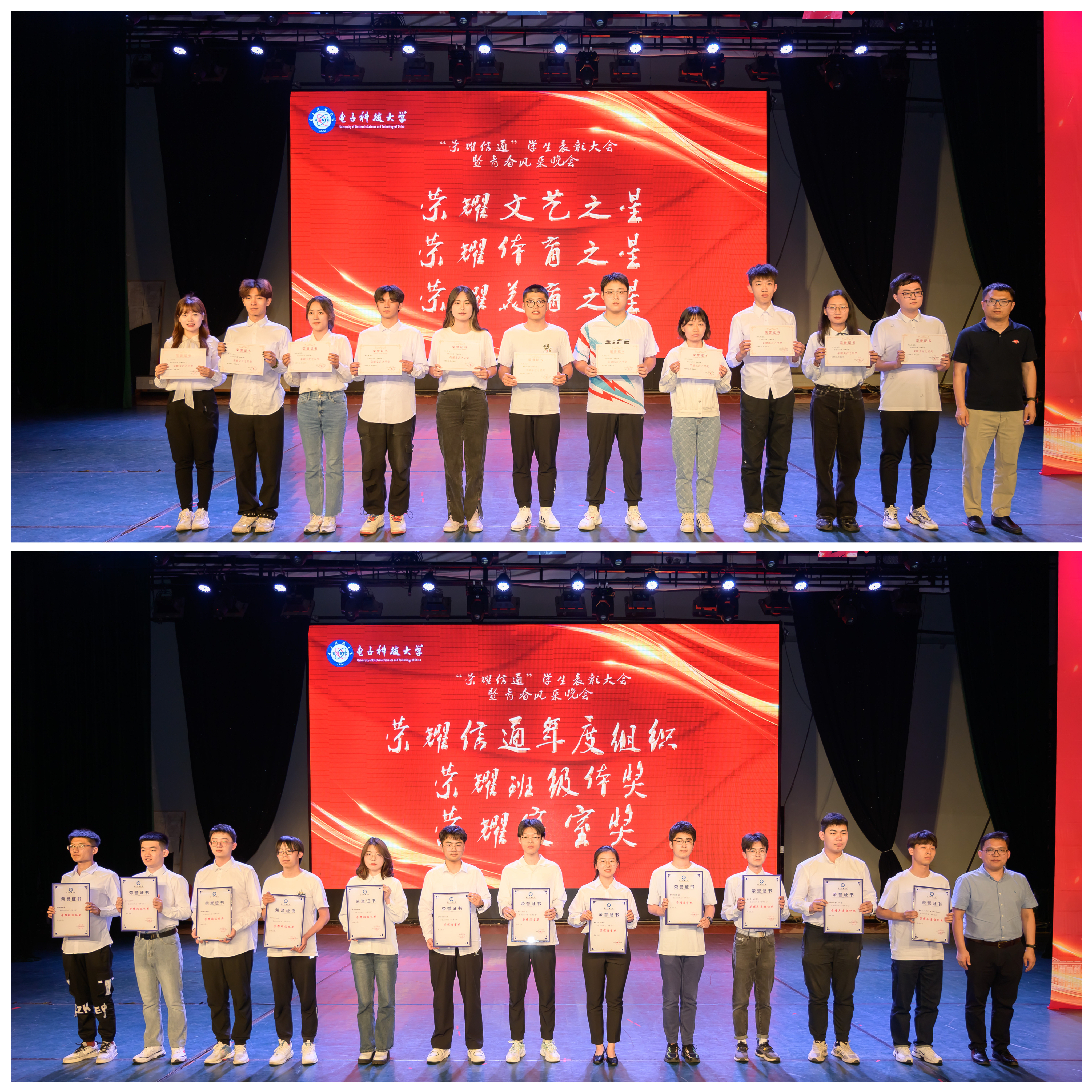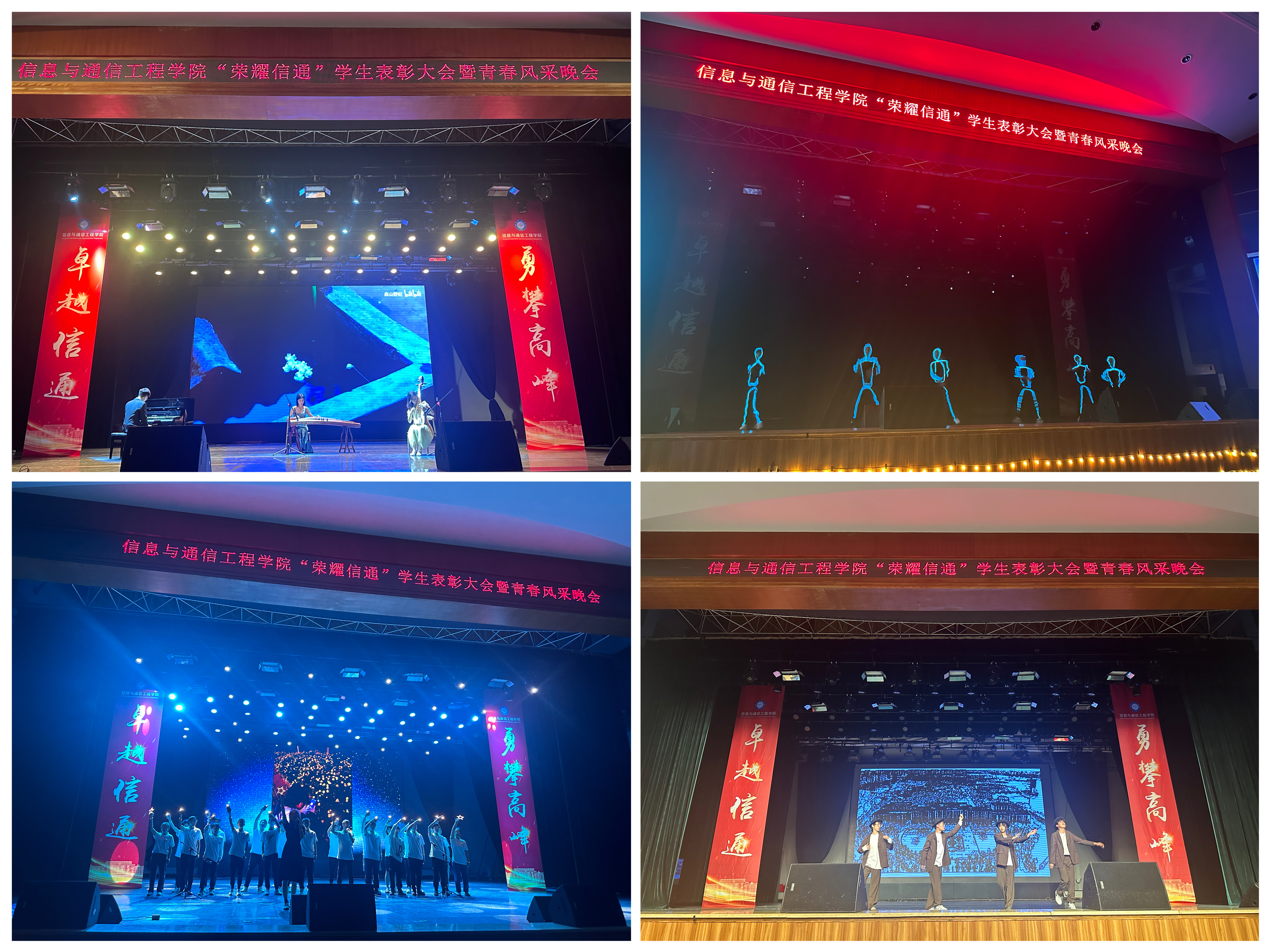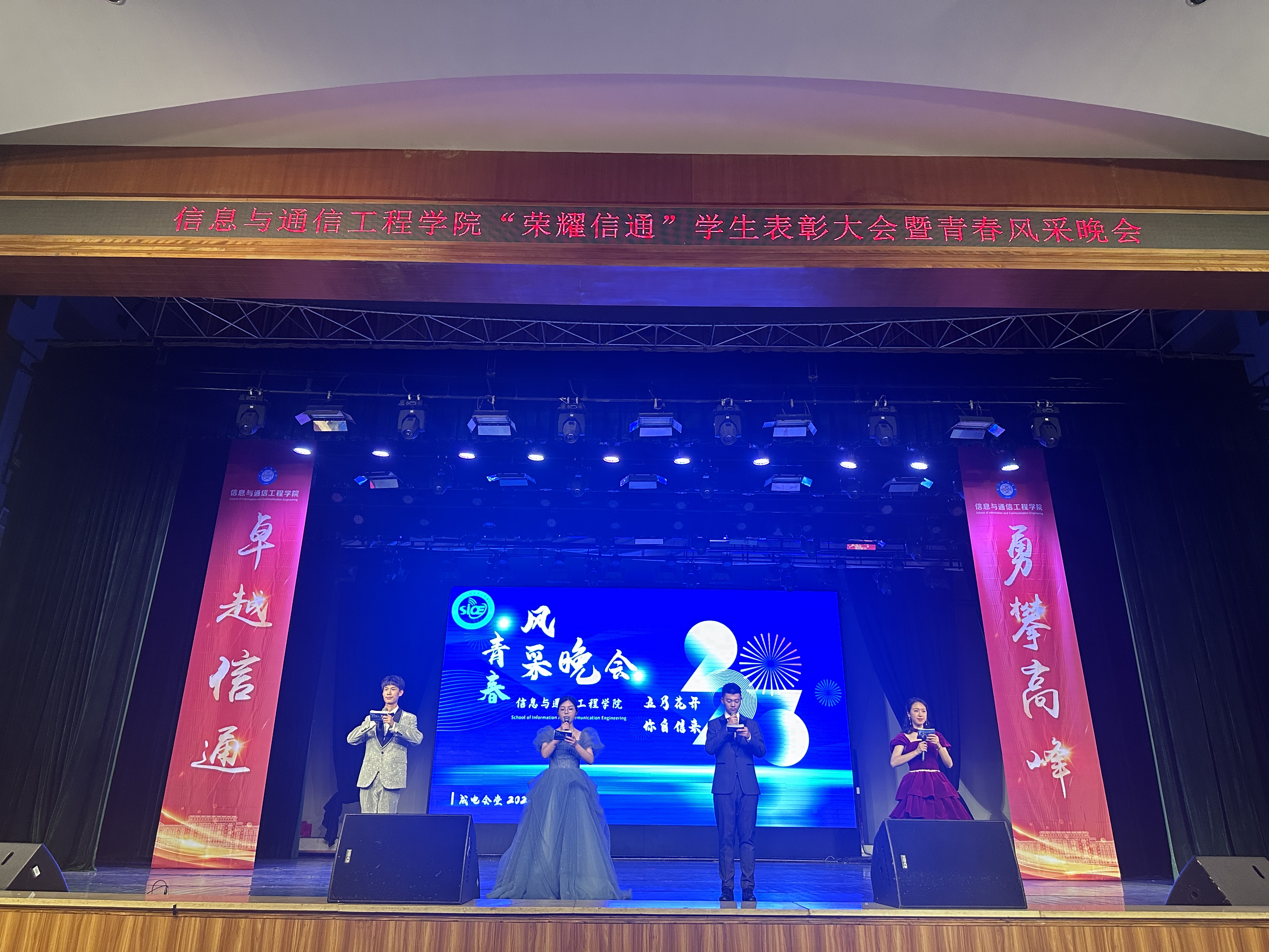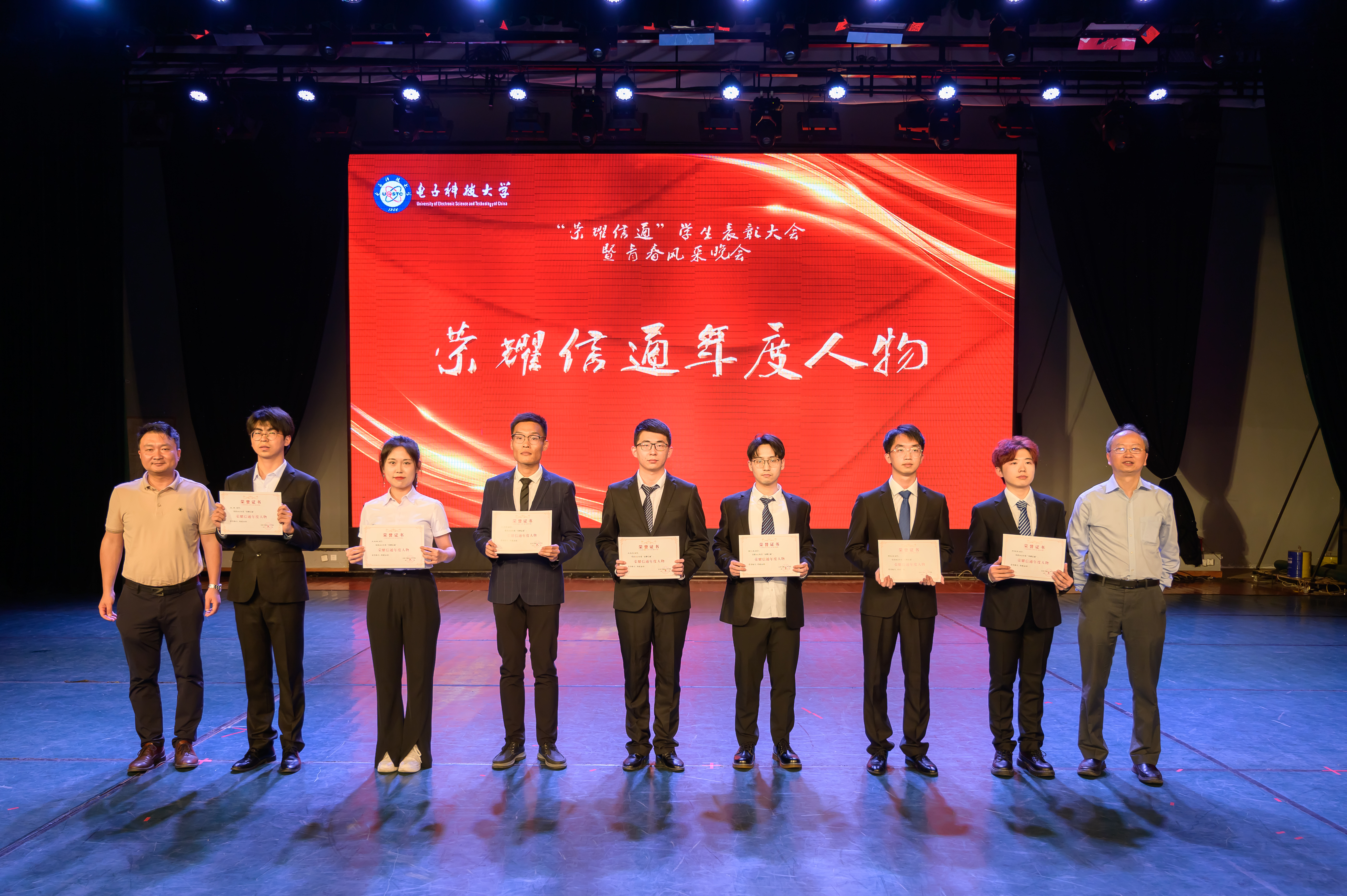 5月5日,学院在成电会堂举办“荣耀信通”学生表彰大会暨青春风采晚会。学院党委冷甦鹏书记、黄钰林院长、何佳副书记、耿宝莹副书记、虞红芳副院长、武俊杰副院长、张跃辉副院长以及华为成都研究所高秀兰女士、蒋志涛先生莅临本次大会。各年级辅导员、班主任、2022级导生以及各兄弟学院代表也来到大会现场,共同见证信通学子的荣耀时刻。
