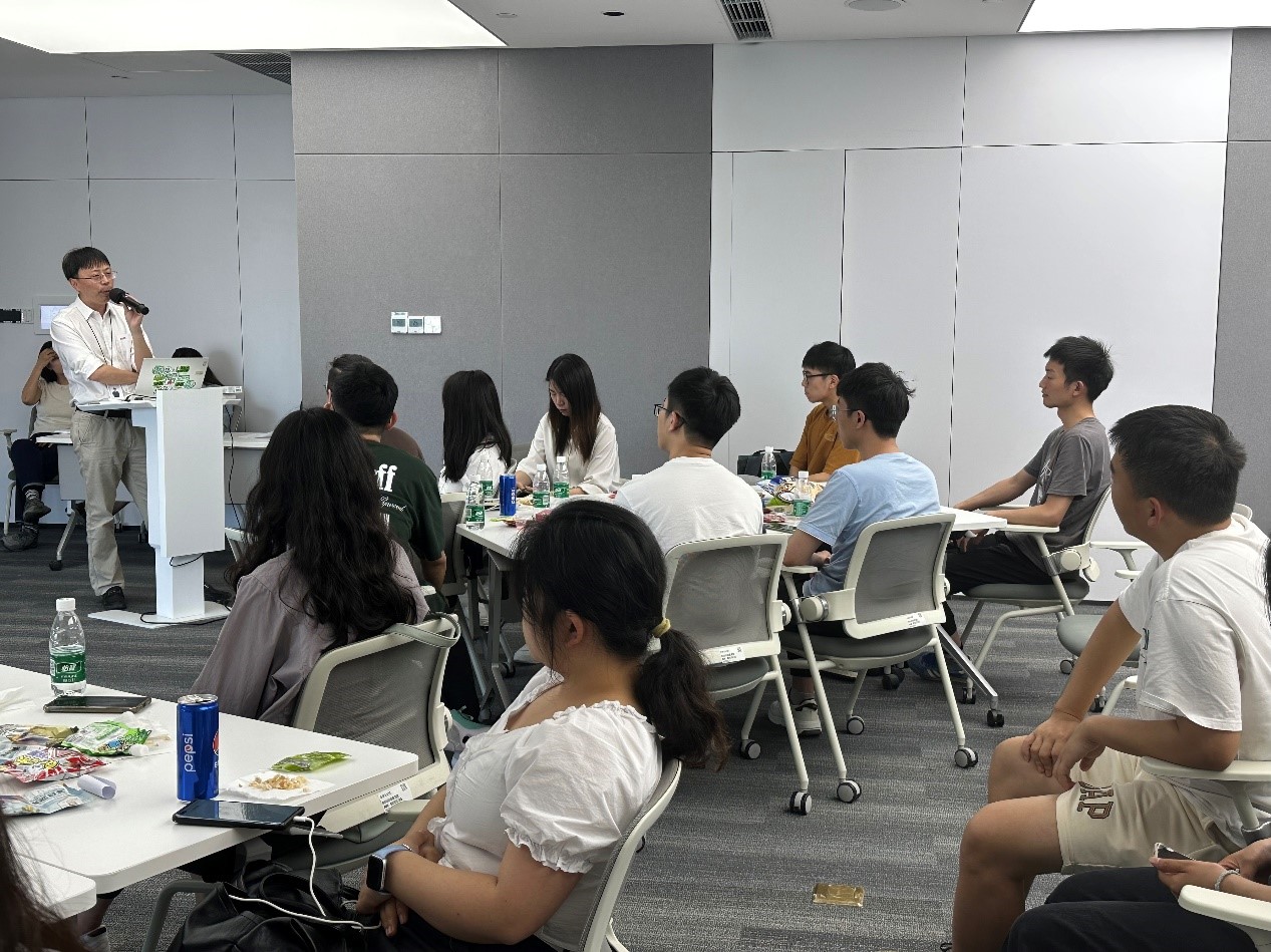 在校友分享环节中,张晓帆学长向同学们介绍了外企、国企和私企等不同类型企业的特点及工作感受,建议同学们结合自身情况选择合适的赛道。