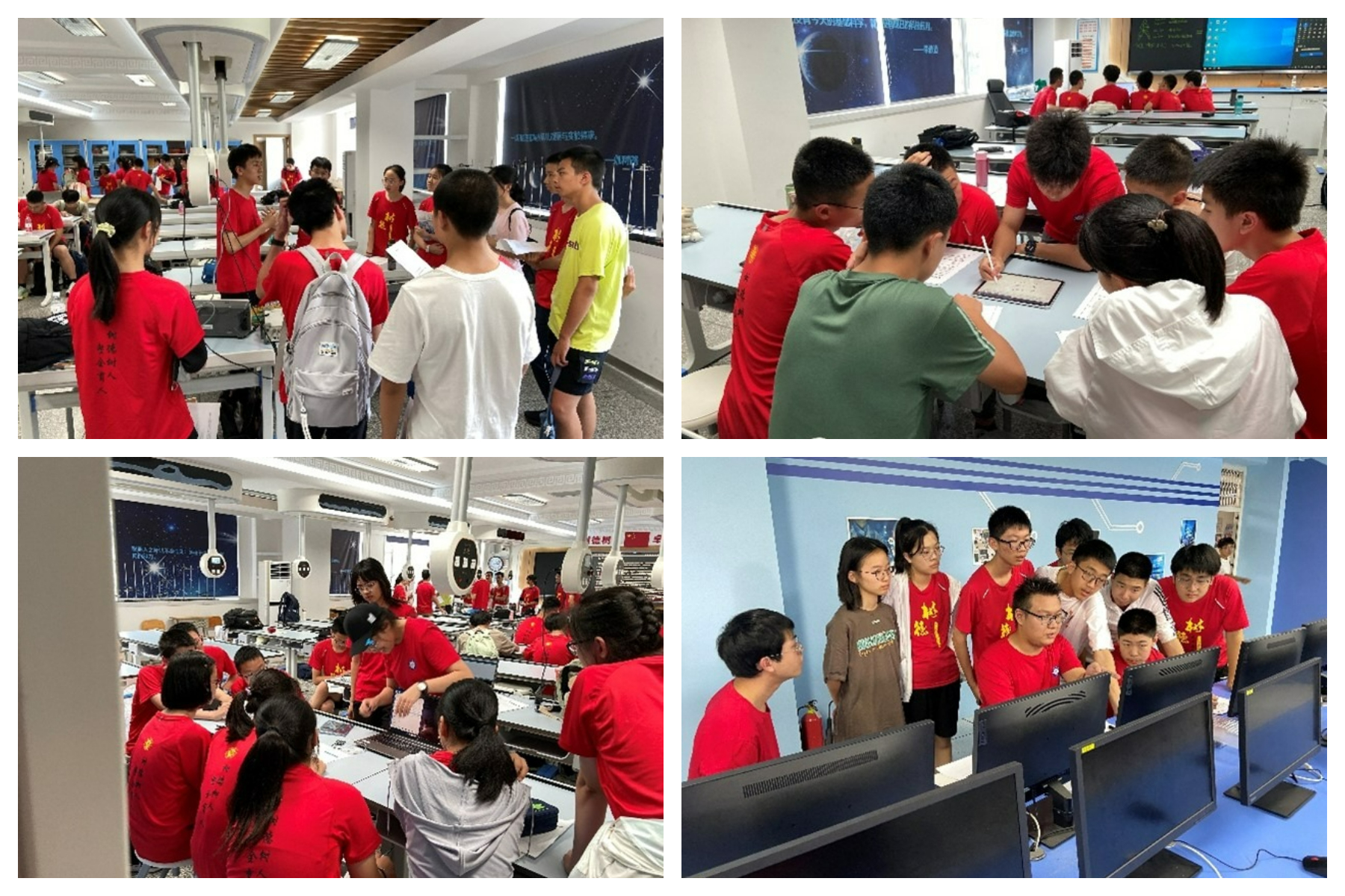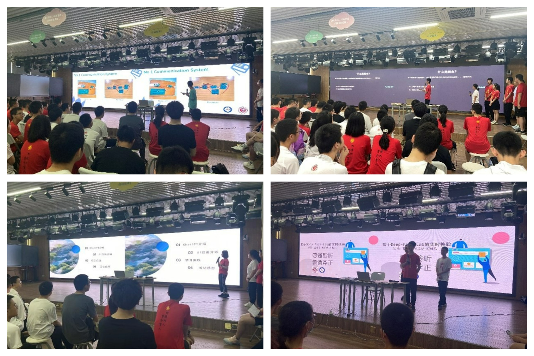 同学们分组进行实践,体验了“无线对讲机设计与制作”、“智能开关设计与实现”、“脑电波控制蜘蛛机器人”、“AI换脸”、“基于ChatGPT和AI绘图的QQ机器人”、“图像风格迁移”等14个充满趣味的实践项目。
