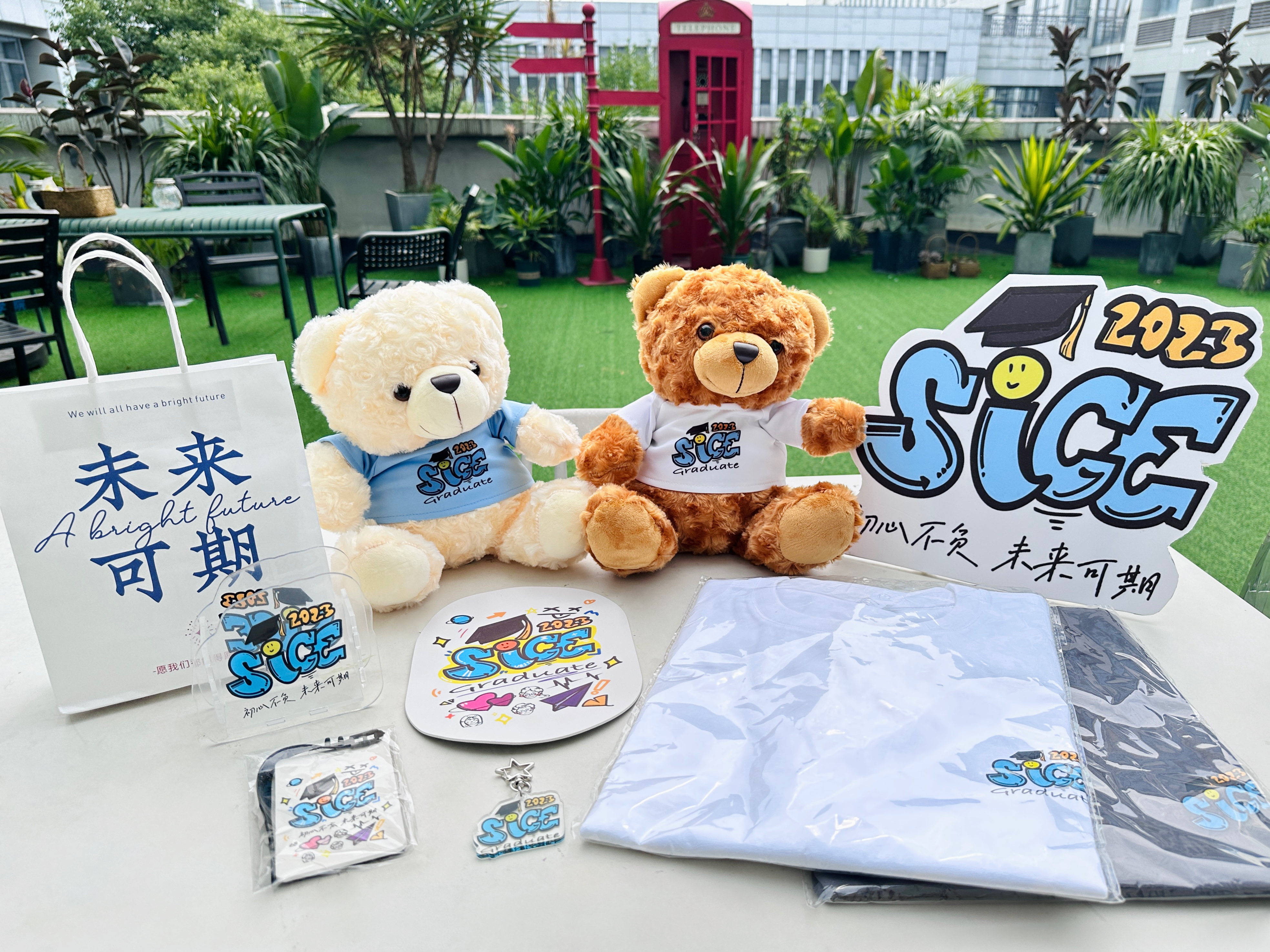 学院还推出“以‘衣’作礼”毕业文化衫图案征集活动,在学院官微发起投票。最终,以学院英文简称“SICE”为主体、辅以创意元素的2019级本科生原创图案高票领先,印制于2023届毕业生文化衫和笔筒、行李牌等毕业文创纪念品,不仅给予学生“学院即吾家”的情感印记,也包含着学院对本届毕业生的期望与祝福,愿2023届毕业生求实求真做学问,大气大为创未来,不畏未知,勇敢拼搏,走出千里归来仍是少年。
