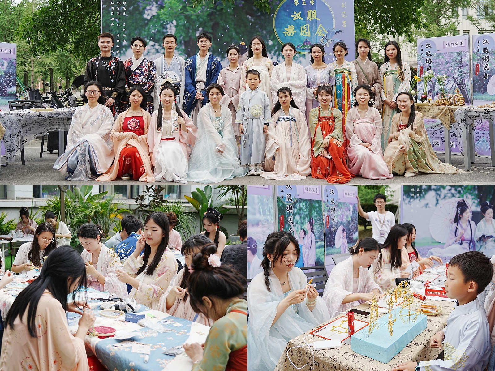 6月1日,学院美育XIN空间举办“糖彩笔墨”——第五季汉服游园会,毕业生们打卡“汉服毕业照”,体验糖画、鲁班锁、剑山插花等传统项目。少女们“半踏长裙宛约行”,少年们“皎如玉树临风前”,衣袖挥动间,一幅俏皮灵动的糖画跃然而上,一件精巧的鲁班锁被缓慢解开,一束秀雅的剑山插花悄然浮现……毕业之际体味传统手工艺魅力,感受华服之美,增强文化自信。