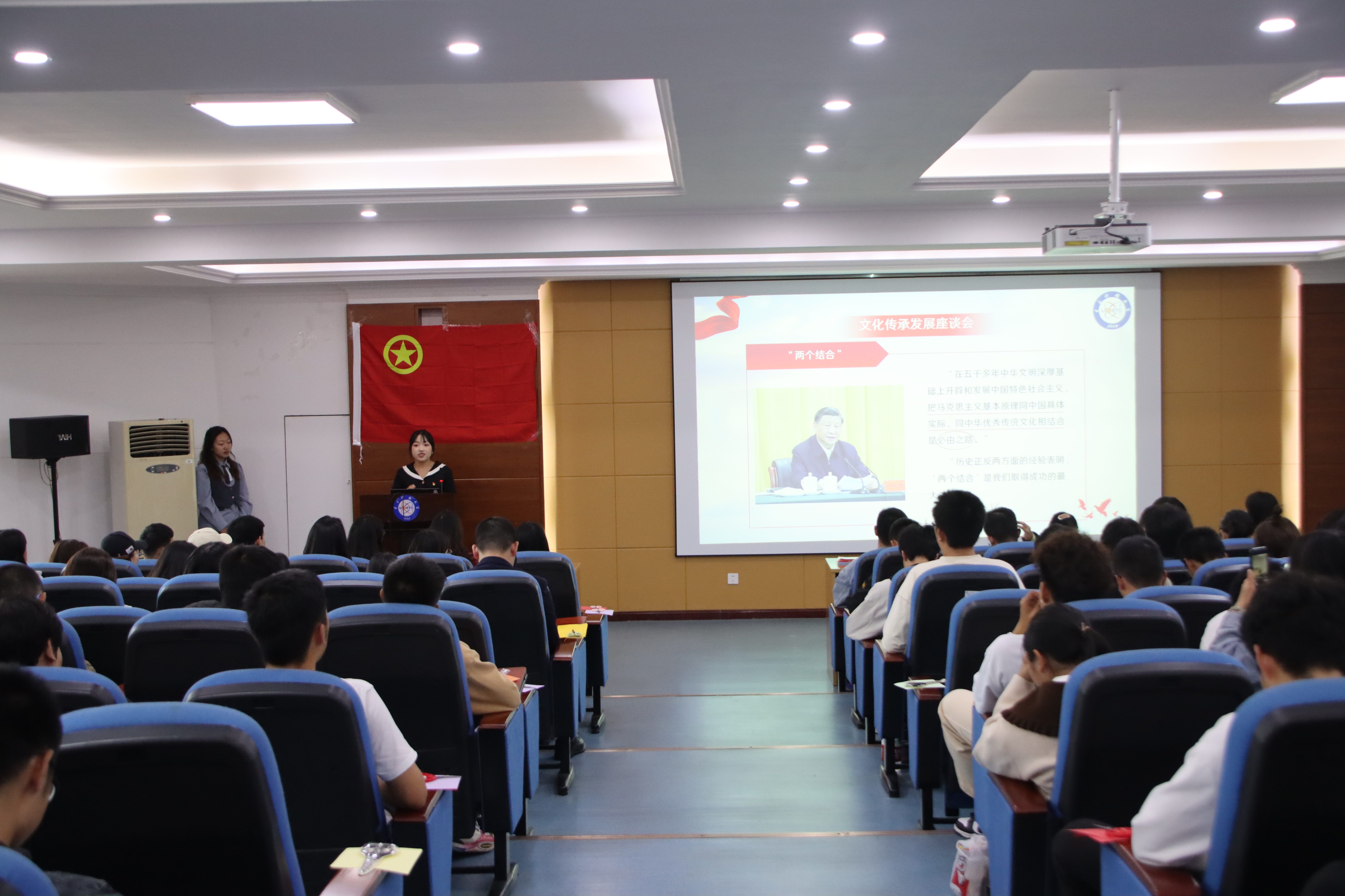 在嘹亮的团歌声中,主题团日活动拉开帷幕。首先,马克思主义学院硕士研究生第二党支部汪思洁作题为《“我们取得成功的最大法宝”——深刻理解和把握“两个结合”的重大意义》的主题宣讲。宣讲由浅入深地介绍了“两个结合”的精神内核与现实意义,并着重对第二个结合——“坚持把马克思主义基本原理同中国优秀传统文化相结合”进行了深入剖析。汪思洁谈到,“结合”的前提是彼此契合,“结合”的结果是互相成就;“结合”筑牢了道路根基、“结合”打开了创新空间、“结合”巩固了文化主体性。她勉励全体同学,“在新征程上,坚持以习近平新时代中国特色社会主义思想为指导,坚持‘两个结合’,坚定文化自信,发挥专业优势,更好地担负起新时代新的文化使命。”