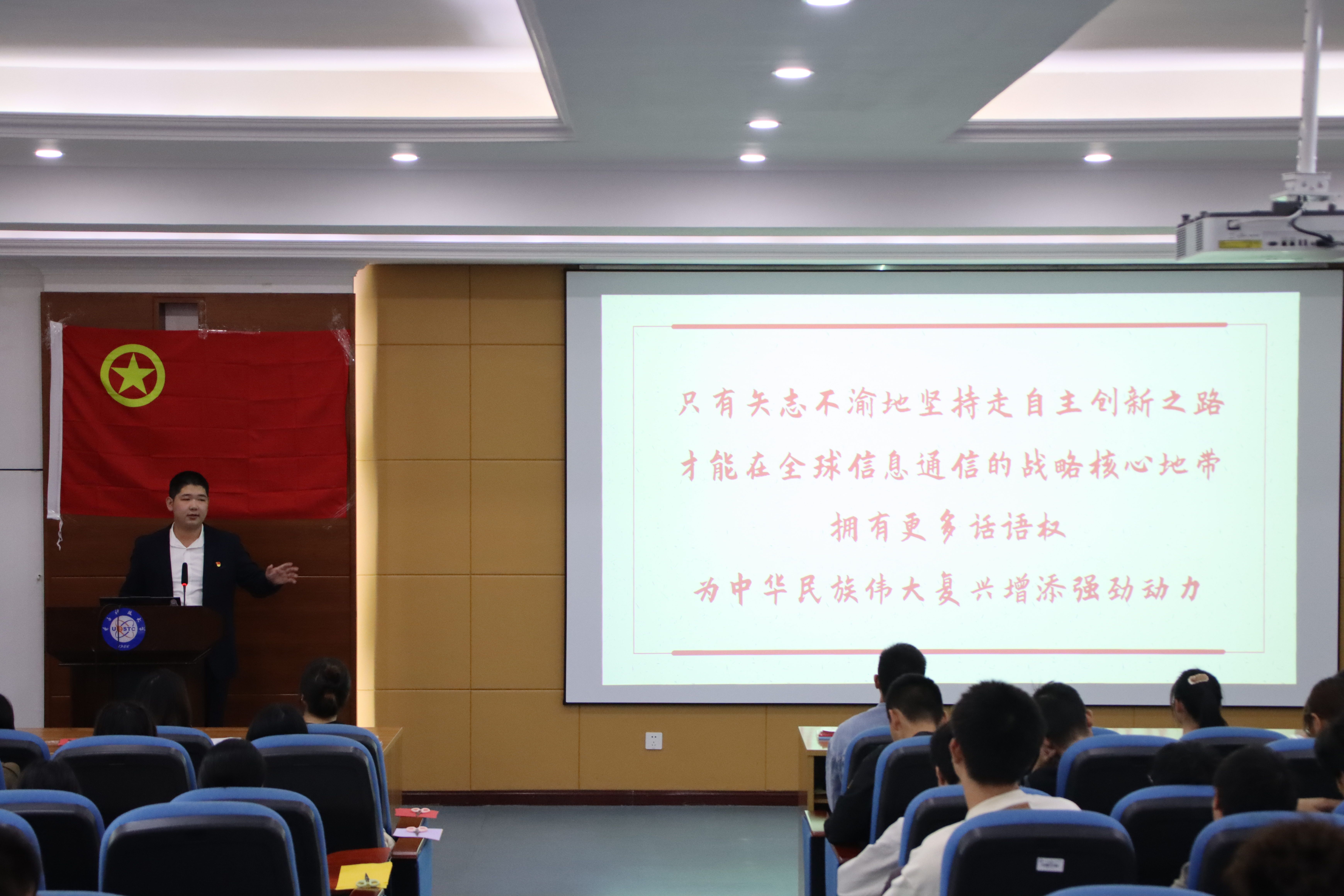 随后,“信仰之光”大学生新思想宣讲团李茂作题为《传承红色基因,再谱通信华章》的主题宣讲。李茂用激情澎湃的演讲回溯了成电建校之初的历程,结合事例向大家介绍了老一辈成电人筚路蓝缕的科研报国之路,并强调先辈血液中的红色基因、身上的红色精神深深的感染和影响着每一位成电学子。他鼓励同学们追随先辈的脚步,努力学习,踔厉奋发,勇毅前行,以实际行动践行“听党指挥,科技报国”的信通学科精神,为国家通信事业发展进步贡献自己的力量!