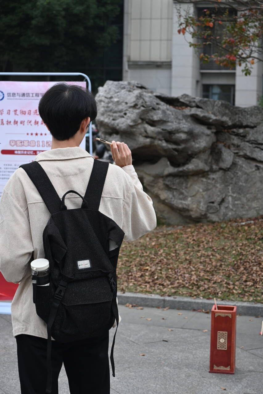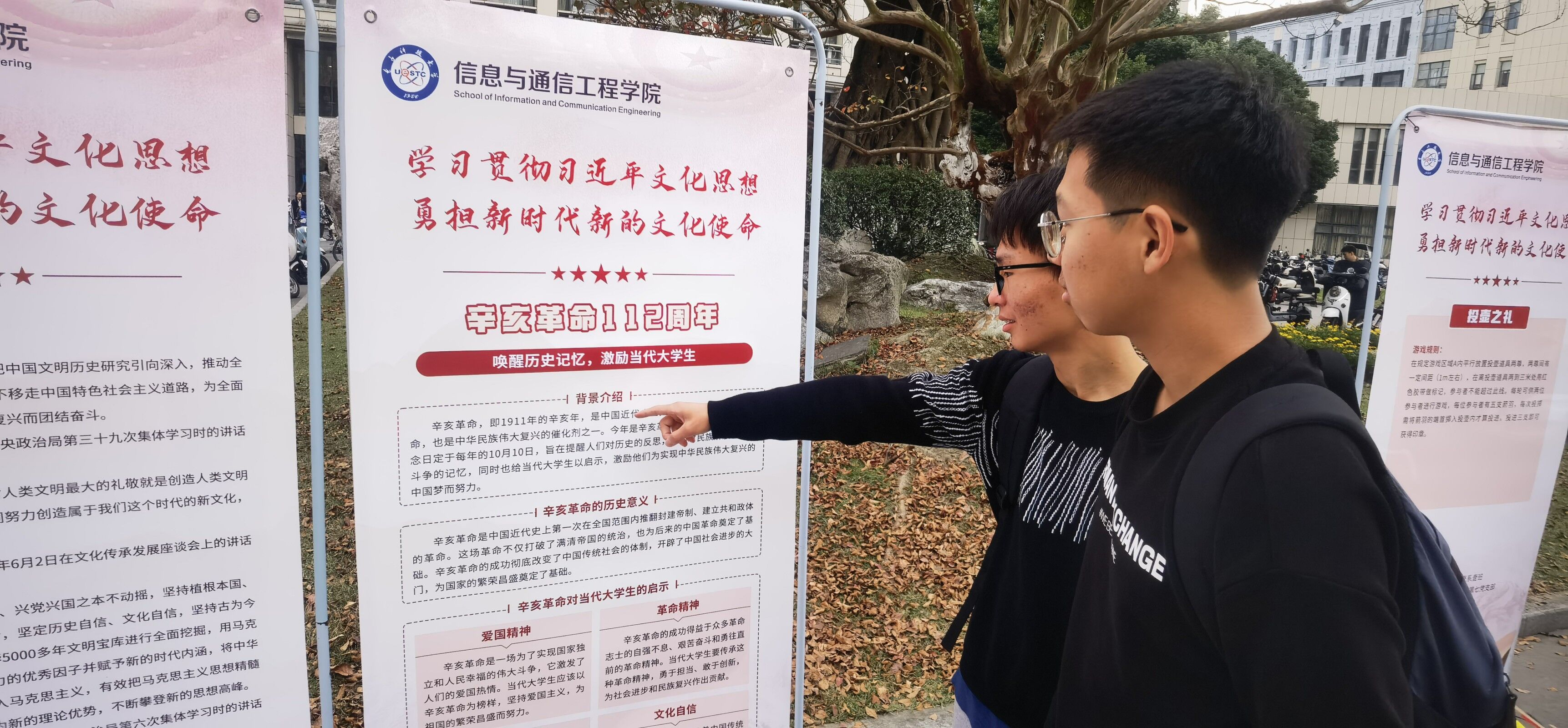此次党日活动以“学习习近平文化思想”和“传承辛亥革命精神”为两个理论学习主题,通过展架介绍了习近平文化思想提出的背景、内涵以及学习贯彻的方法,并展示了辛亥革命精神及其对大学生的启示,鼓励同学们厚植爱国精神、革命精神,庚戌民主思想,坚定文化自信。
