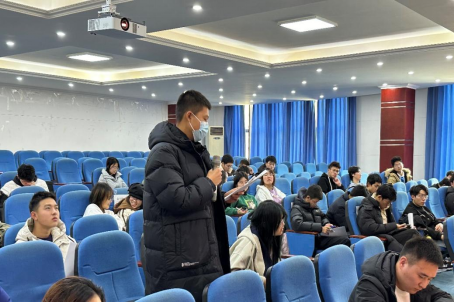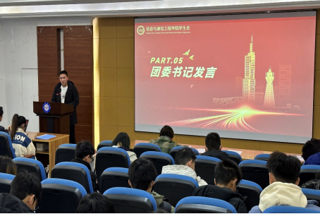 最后,学院团委书记罗荣老师发言。他首先感谢了学生会全体成员的努力付出,肯定了本学期取得的工作成绩。他提到,面对学院学生人数多、活动多,工作难度大、强度大,学生会积极作为、开拓创新,圆满完成各项阶段性工作,取得新成绩新成就。此外,他向学生会和全体成员提出三点期望。一是增强政治意识,强化理论学习,坚持党旗所指就是团旗所向,在院党委领导和校团委指导下继续做好团学工作。二是立足岗位职责,提升综合素质,将“愿意做”转化为“认真做”和“做出彩”。三是坚持服务初心,协力贡献大局,在团学工作中识大体顾大局,将服务同学这一宗旨摆在首位,积极为学院发展贡献力量。