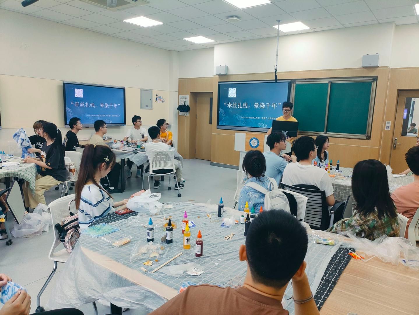 活动伊始,工作坊的同学们为同学们详细讲解了扎染技艺的历史,并带领大家欣赏了精美的传统扎染作品。通过这些介绍,同学们了解到扎染作为中国民族千年传承的工艺,承载了民族的智慧与记忆。
