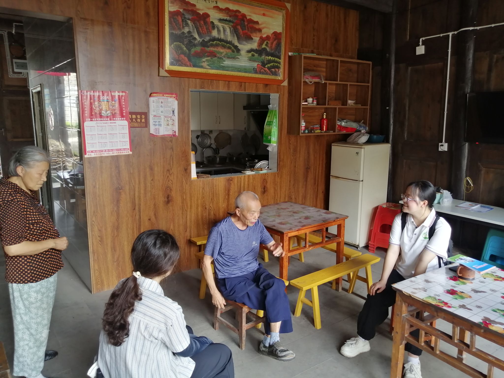 7月6日,队员们首先拜访了行医50余年的村医石安元老先生,通过与石村医的交流,大家初步了解了白衣古镇的历史文化与变迁发展情况。随后,队员们分组走访了10余户居民,深入了解了他们的家庭生活、生产经营及古镇游客流量等情况。
