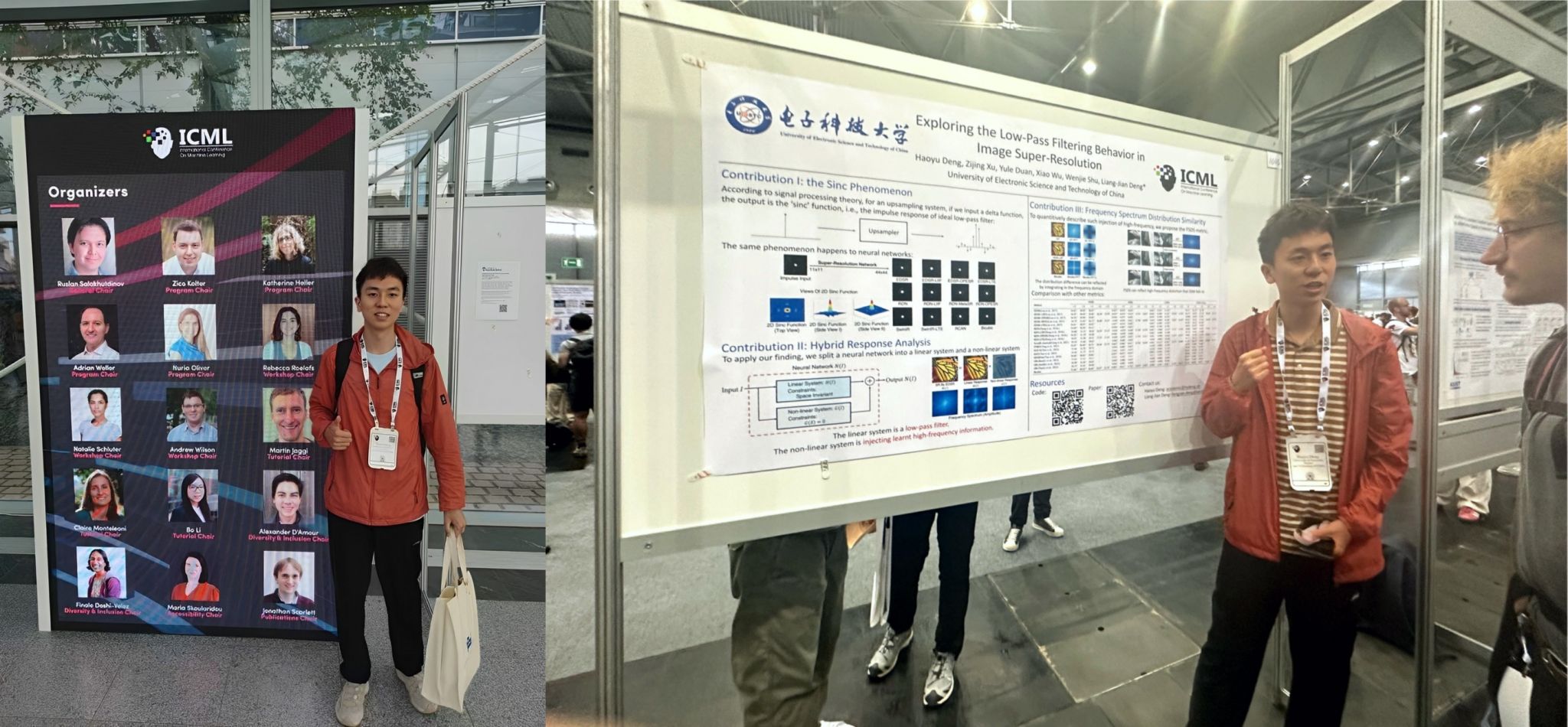 近日,信通学院2021级本科生邓皓宇在机器学习领域顶级会议International Conference on Machine Learning(ICML)发表题为“Exploring the Low-Pass Filtering Behavior in Image Super-Resolution”的图像超分辨率可解释性工作。williamhill官网均为第一署名和通信单位。ICML是机器学习三大国际著名会议之一,至今已举办41届,在推动机器学习发展过程中具有举足轻重的影响力。今年的ICML会议于7月21日-26日在奥地利维也纳举办,邓皓宇代表课题组参会并进行论文展示。