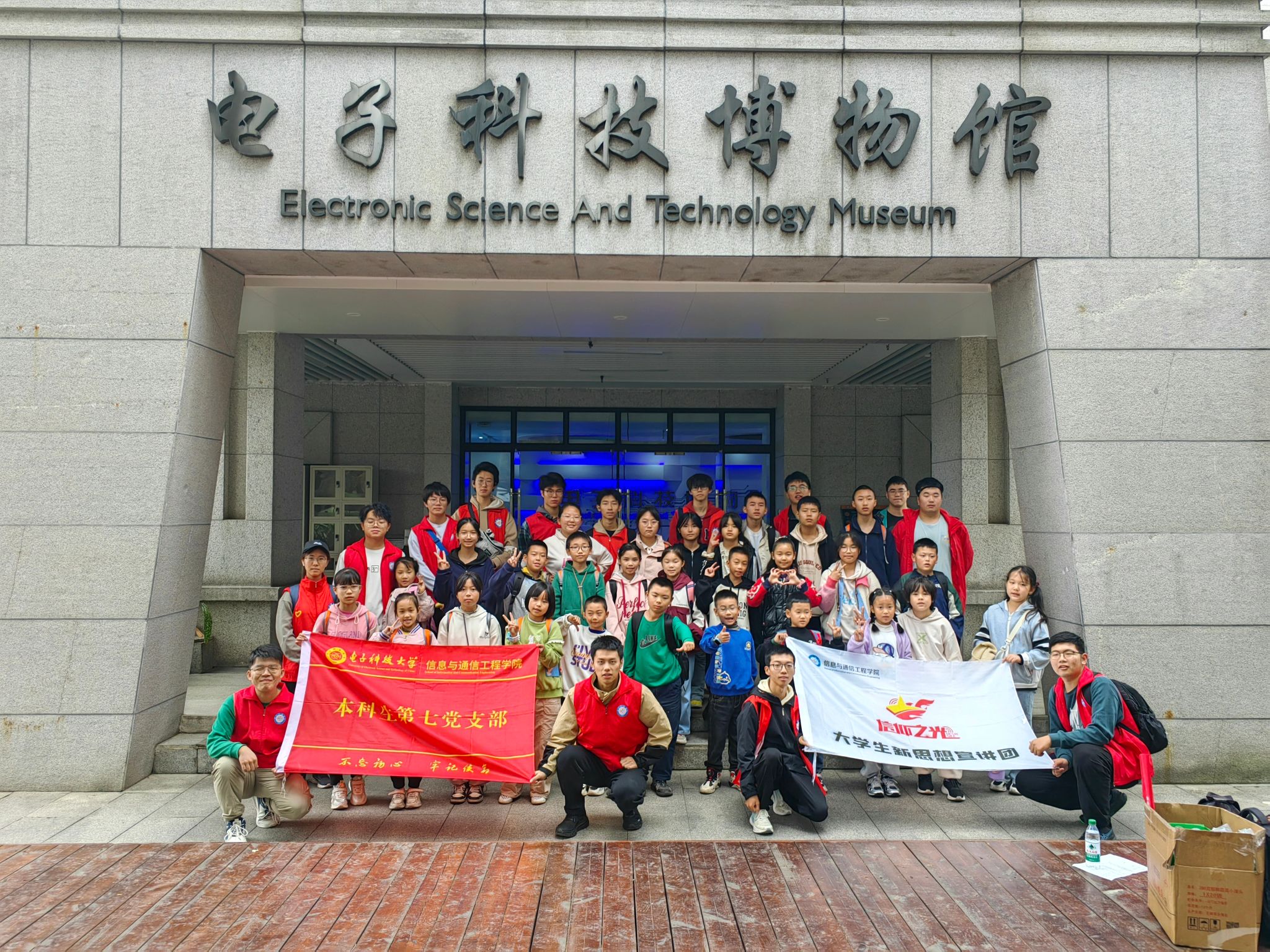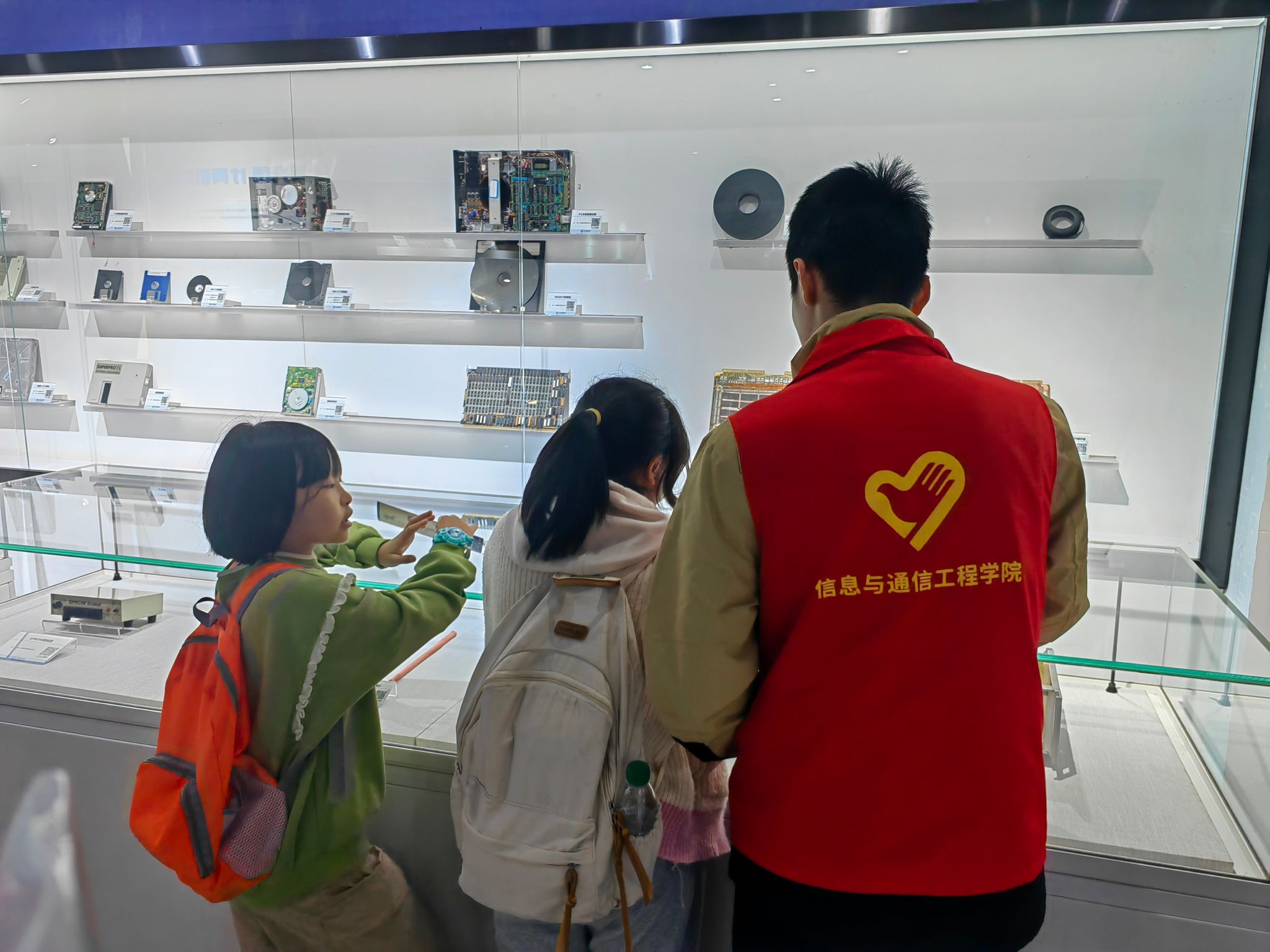活动的第一站是williamhill官网博物馆,众多展品详细记录着早期通信技术的发展演变,也讲述了现代通信设备迭代更新的故事,整个博物馆充满了科技和创新的气息。在博物馆里,第七党支部成员马海宇、郝晟博结合所学知识,向孩子们讲述了许多历史上具有里程碑意义的通讯设备和技术成果。