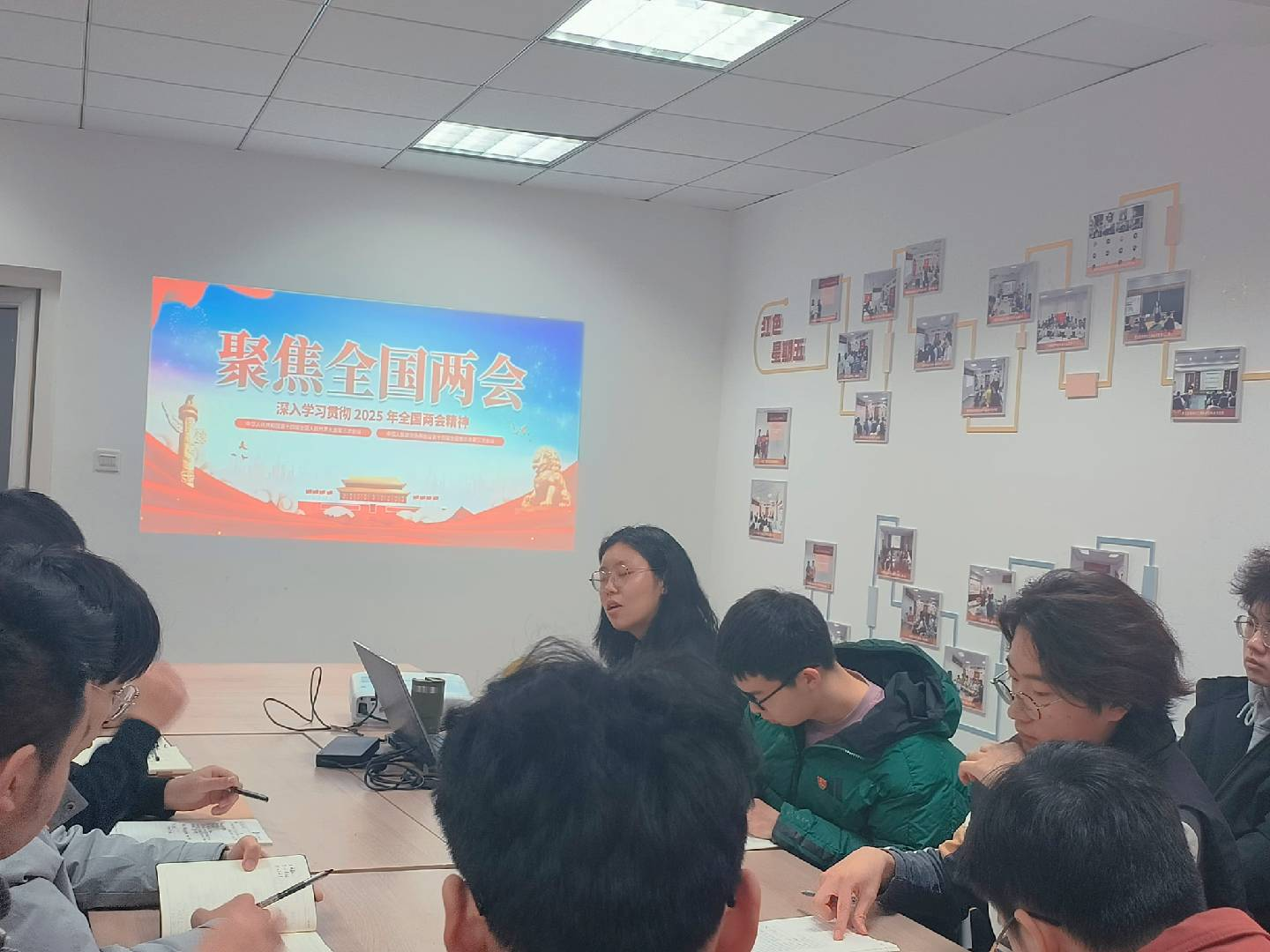 支部书记官梓老师在最后的总结讲话中勉励大家,要从实际学习情况出发,立足自身专业特色,积极响应党的“加快发展新质生产力”战略部署,自觉参与到社会主义现代化建设中,深入了解国家在新兴产业、未来产业方面的需求,将两会精神融入日常学习和科研中,做到信心凝聚力量,实干谱写华章。