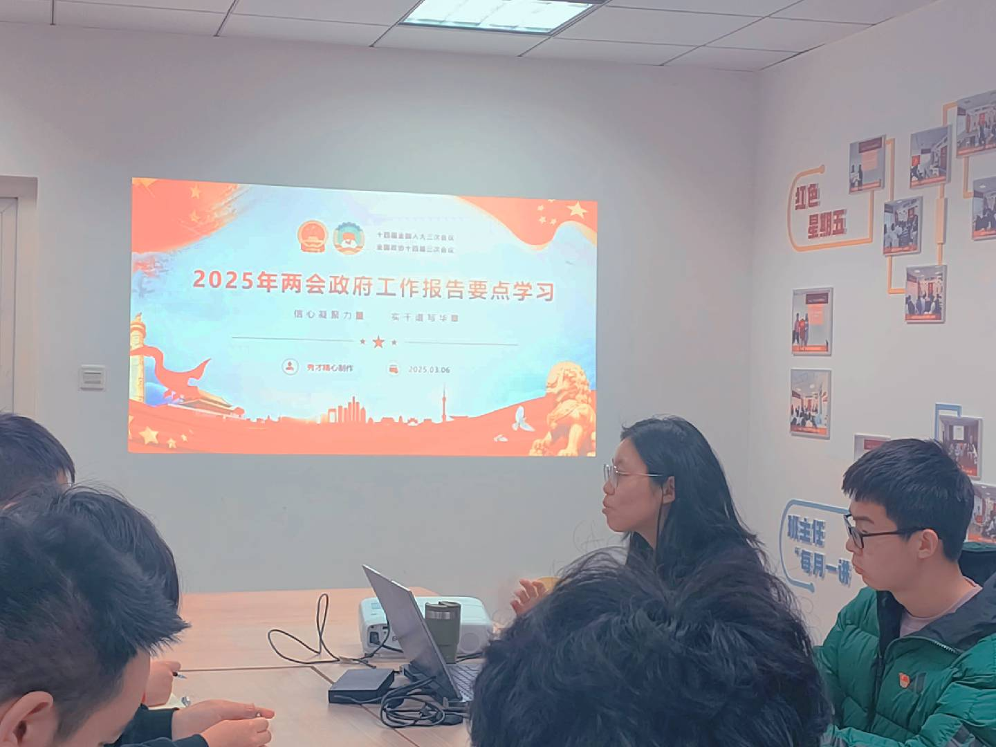 活动开始,支部书记官梓老师首先向大家介绍了本次活动的具体安排和重要意义,强调全国两会对党员干部提升政治素养的重要性,随后带领支部成员解读政府工作报告要点,深入讲解两会精神的核心要义、丰富内涵和实践要求,帮助党员更好地理解和把握两会精神。