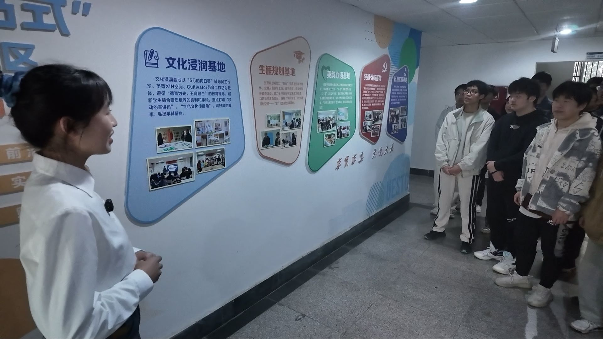 宣讲员成员杨涔可首先解读了“家”门口的文化基站的建设理念。作为校级文化浸润基地,学院立足学科特色,创新构建了“三频共振”特色文化育人体系。红色文化如同穿透力强的低频基底信号,夯实信仰根基;传统文化如同增强共鸣的中频谐波,持续滋养文化自信;学科文化如同能量报表的高频脉冲,激发创新动能。“家”门口的文化基站将这三种信号在宿舍生活区交织共振,形成覆盖同学们成长全周期的文化浸润频谱。