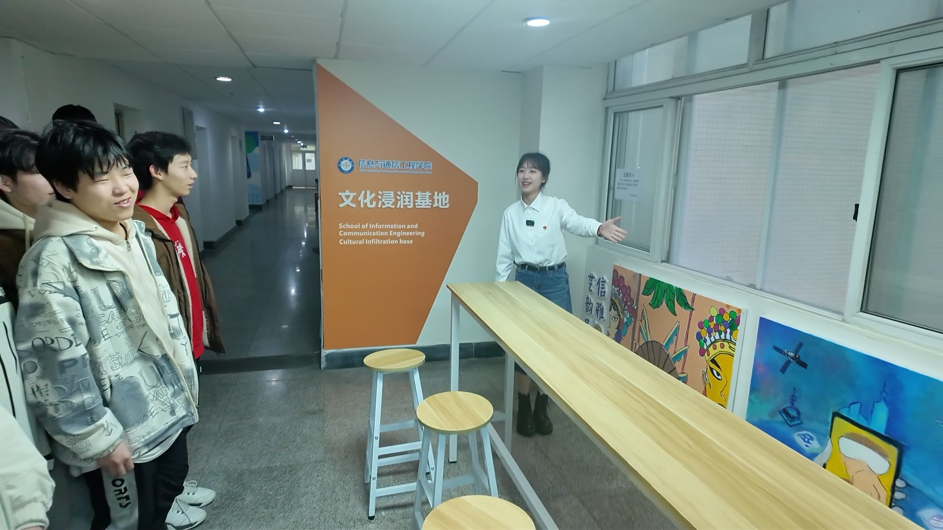 接着,杨涔可向同学们依次介绍了文化长廊的各个板块,包括“雷达种类知多少”、“创意投影灯”、“通信技术变革”等。
