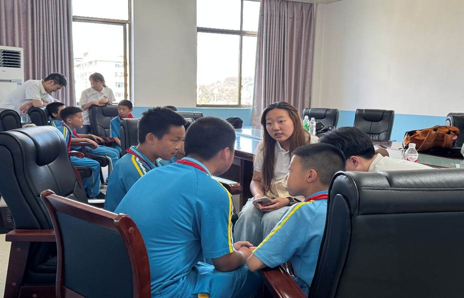 实践队先后前往天马镇白岩坪小学、岑巩县第四小学及岑巩县第四中学,以访谈交流为主要形式开展调研,并深入课堂一线,细致询问学生的学习目标与实际需求,了解当地教育发展现状及留守儿童的生活境况。