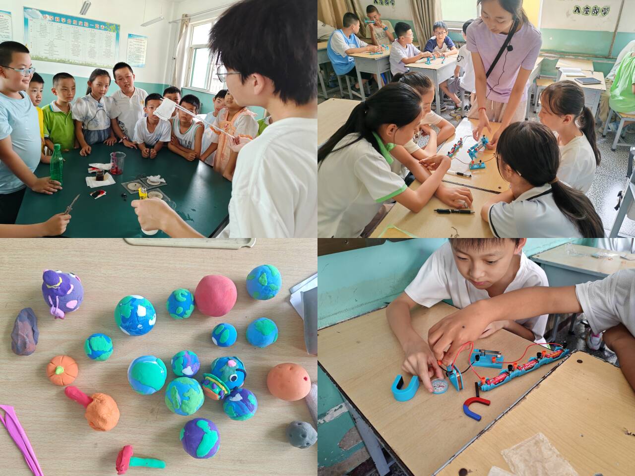手工制作以多样活动为载体,引导同学们探索多元世界。小老师们教授同学们折纸飞机与回旋纸飞机,讲解重心原理助其飞得更远,还开展了四折纸绘画游戏。地理课堂上,讲解各大洲民族习惯、风土人情,结合七大洲四大洋位置,指导同学们制作地球黏土模型和幻想星球模型;通过视频分享了宇航员在太空生活的场景,讲述了宇航服的重要作用,教学用黏土制作太空人;从柿子生长环境等入手,指导制作盆栽。多样化课程让同学们在实践中拓宽视野,提升动手能力与想象力。