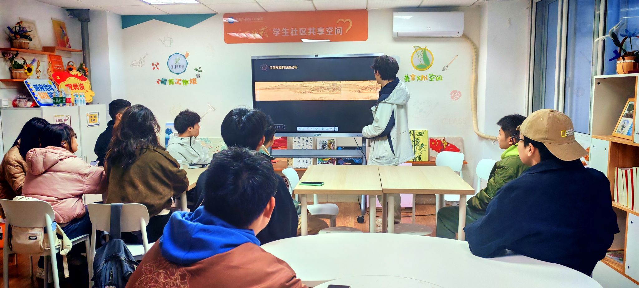 活动伊始,主持人首先为参与活动的同学们铺展开一幅古典楼阁的文化长卷。从黄鹤楼“黄鹤一去不复返”的雄奇壮阔,到岳阳楼“先天下之忧而忧”的文人情怀,从斗拱结构的精巧嵌套到榫卯工艺的严丝合缝,每一处细节都被细致解读。那些跨越千年的建筑瑰宝,不仅是古人营造技艺的巅峰之作,更承载着“天人合一”的东方哲学与家国情怀,让同学们在聆听中读懂了古典建筑背后的文化密码。