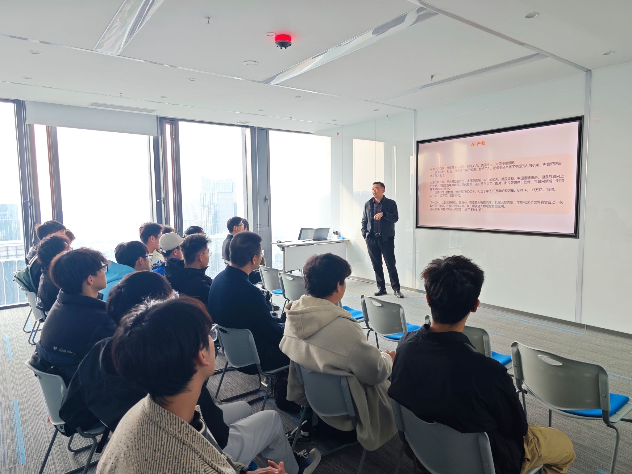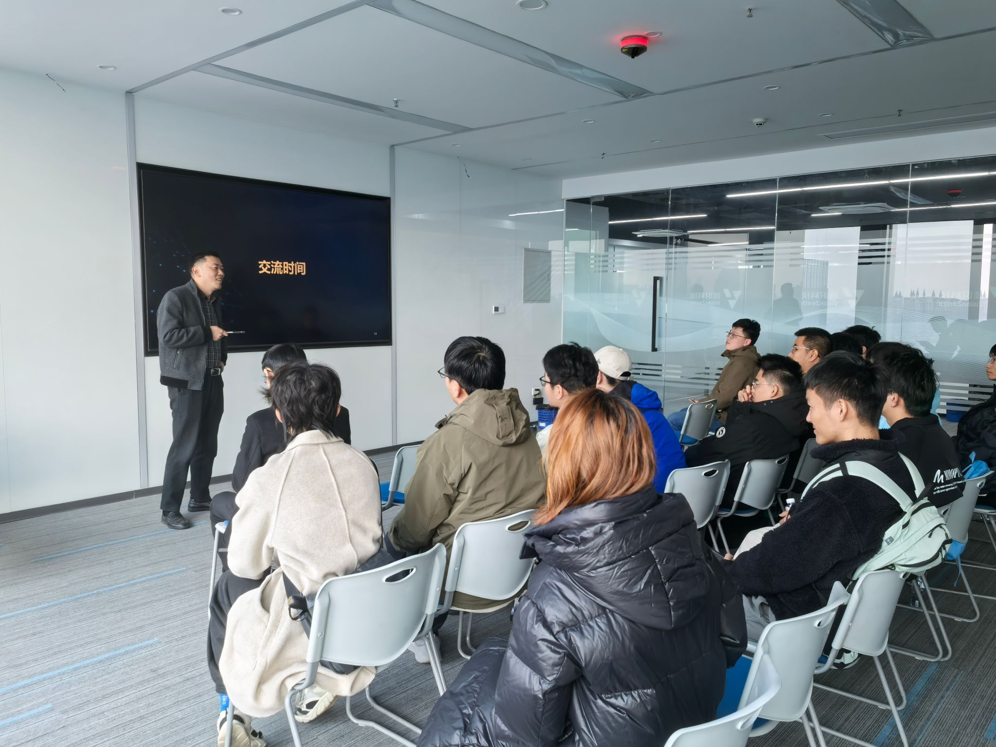最后,1999届校友、公司智慧交管事业部全国销售总监吴嘉伟围绕全球工业发展、AI产业前沿等话题分享行业动态,结合个人经历解答同学们生涯规划困惑。交流环节中,同学们踊跃提问,就低空经济、身份转变等问题与吴总深入探讨,吴总结合案例逐一回应,现场互动氛围热烈。