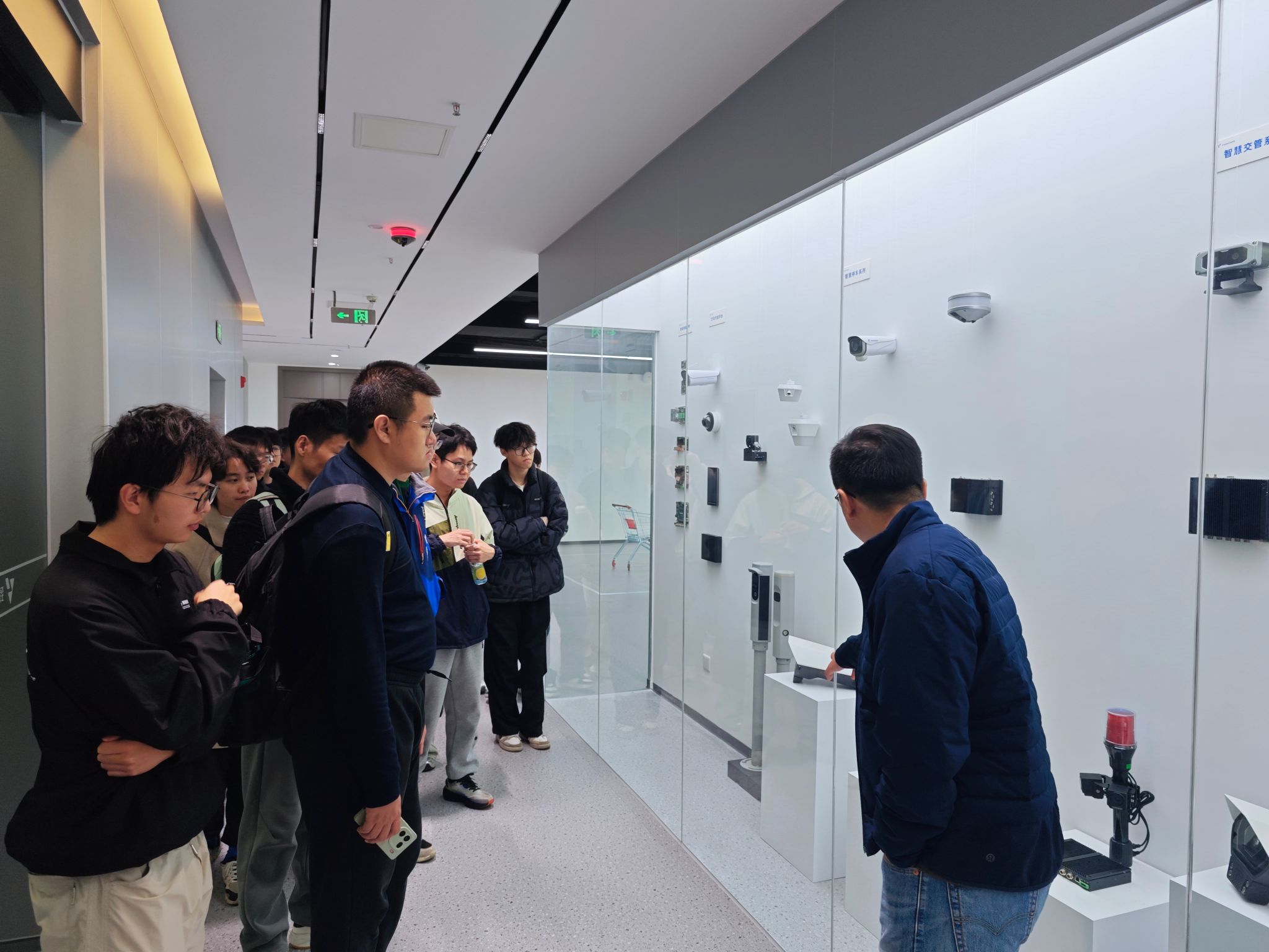 活动伊始,公司副总经理王蔚宇带领同学们首先参观了臻识科技公司展厅,详细了解公司发展历程、业务领域及行业成就,并近距离观察了公司自主研发的交通数据采集模块、智能抓拍设备、车牌识别终端等设备,让同学们看到技术落地的硬件形态。