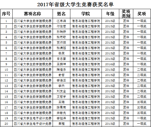近日,四川省教育厅公布2017年省级大学生竞赛项目获奖名单,william英国中文在竞赛中取得优异成绩。其中,获得一等奖54人,占全校三分之一;二等奖32人,占全校三成;三等奖17人。获奖人数和比例均位居学校前列。